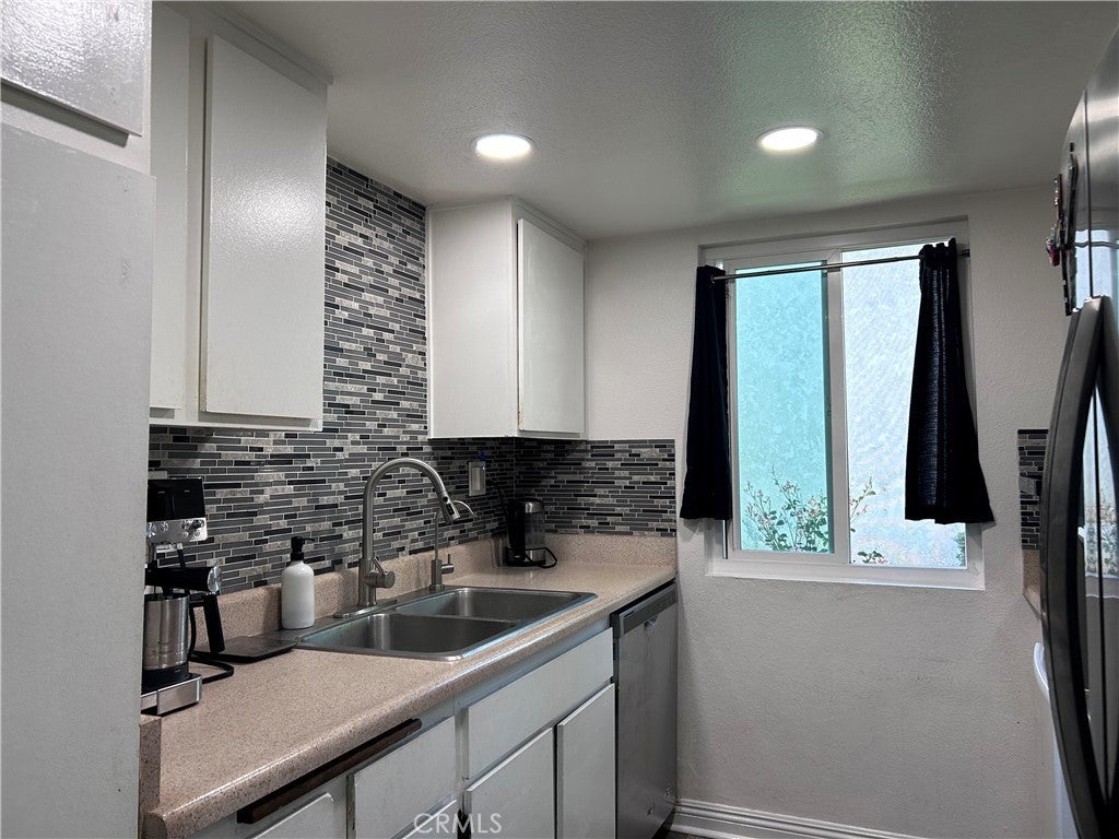 Updated Ground-Level End Unit in Gated Fashion Heights – Move-In Ready with 2-Car Garage! This rare ground-level end-unit condo at the quiet back of the secure, gated Fashion Heights community in La Habra offers privacy, convenience, and modern updates. The 2-bedroom, 2-bath home (approx. 886 sq ft) features fresh new vinyl plank flooring in main areas, newer carpet in bedrooms, brand new recessed lighting throughout for a bright, contemporary vibe, dual-pane windows, and an updated kitchen with tile floors and stainless-steel appliances. Enjoy low-maintenance living with a spacious 2-car detached garage and community perks including a sparkling pool and spa/hot tub, well-maintained landscaping, and on-site laundry. HOA covers water, gas, trash, and common areas—keeping things simple. Prime location near La Habra Marketplace shopping, dining, and easy freeway access. This move-in-ready gem combines modern touches, extra parking, and resort-style amenities—perfect for relaxed Southern California living!
