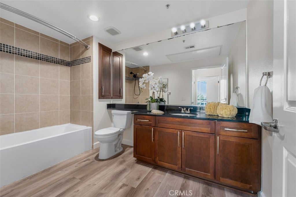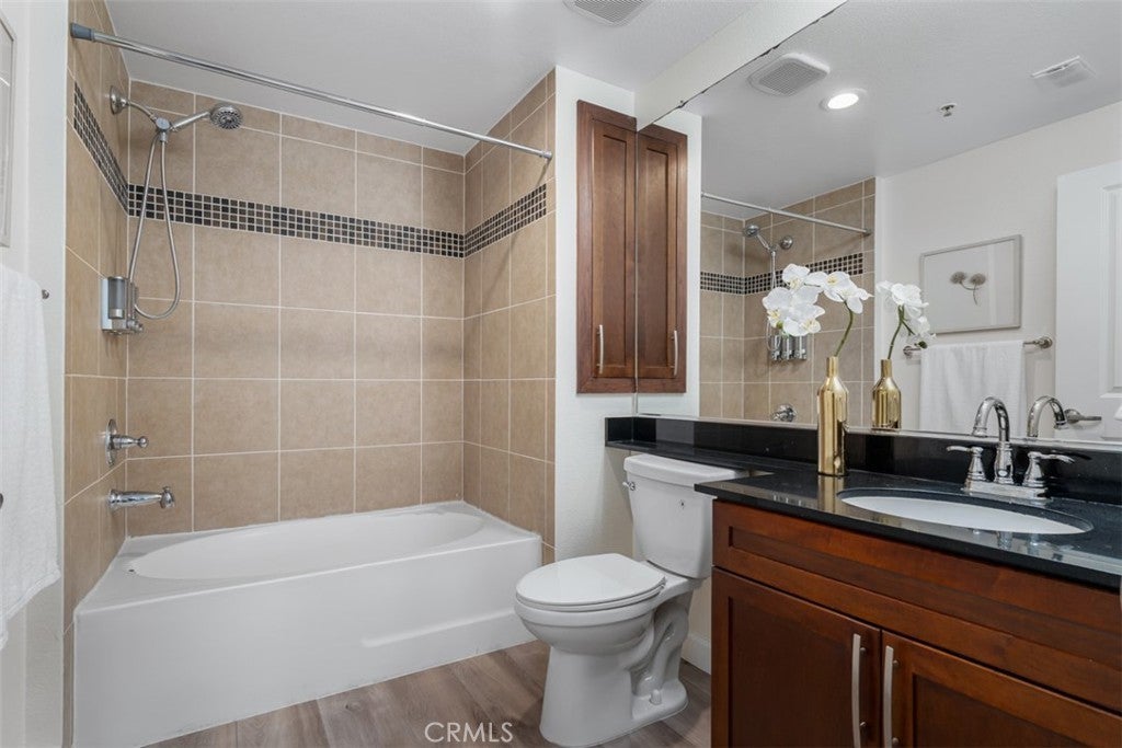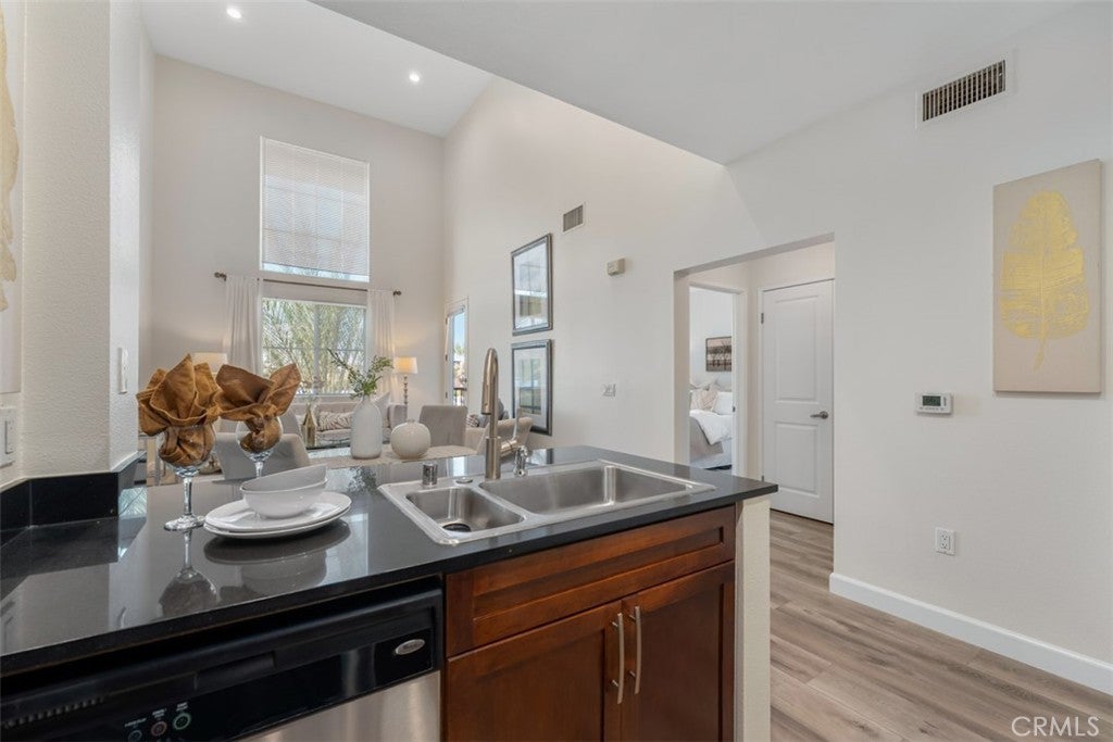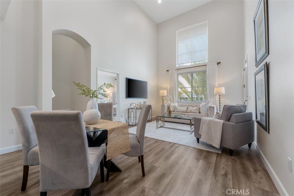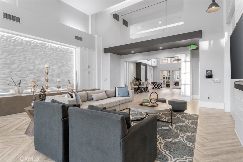 Experience refined urban living in this exceptional top-floor luxury residence located in Avenue One, in Irvine, one of the most prestigious, safest, and master-planned cities in the state. Known for its award-winning schools, walkable neighborhoods, cultural diversity, and premier city amenities, Irvine offers an unmatched Southern California lifestyle. This private top-level unit features no neighbors above, ensuring tranquility and exclusivity. The home showcases a dramatic high-ceiling living room filled with natural light, complemented by recessed lighting and a seamless open-concept kitchen, perfect for elegant entertaining and everyday sophistication. Enjoy outdoor living spaces, including a rear private patio/ balcony with street views. The thoughtfully designed floor plan offers two generously sized bedrooms and two full bathrooms, enhanced by a versatile loft space that functions beautifully as a third bedroom, executive home office, or creative studio. This residence has been meticulously remodeled with brand-new luxury vinyl plank wood flooring, modern baseboards, and fresh designer interior paint, delivering a turnkey, contemporary aesthetic. Residents enjoy access to resort-quality HOA amenities, beginning with a luxurious resident lounge with service kitchen, elegant seating areas, sparkling pool and spa, tennis and basketball courts, and retail shops just steps away. Perfectly positioned near major freeways, shopping centers, fine dining, public parks, and entertainment, this home blends luxury condo living, walkability, and convenience in one of Orange County’s most desirable communities. A rare opportunity to own a turnkey luxury home in one of California’s most coveted cities. NO MELLO ROOS!