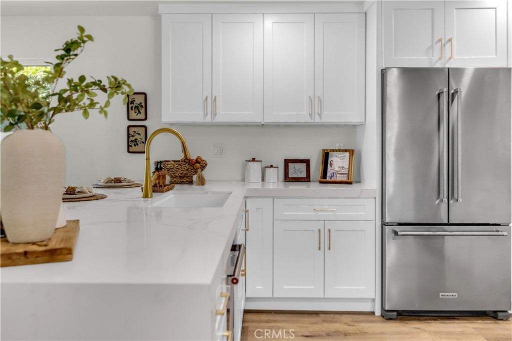 Renovated inside and out with a modern, warm design and high-end finishes, this gorgeous, move-in ready home is ideally located in the highly sought-after College Park East neighborhood within the award-winning Los Alamitos School District. Thoughtfully designed for today’s lifestyle, the home blends comfort, efficiency, and effortless indoor-outdoor living. Recent upgrades include a brand new energy-efficient roof with cool sheathing, dual-pane windows and patio slider, a new 200-amp electrical panel, fresh interior and exterior paint, a new modern garage door, and a finished garage with drop-down ladder for attic access and new side gates. The home is also equipped with central air conditioning, providing year-round comfort. Inside, the open-concept layout creates a seamless flow between the living room, dining area, and kitchen—perfect for both everyday living and entertaining. Natural light fills the space, highlighting wide-plank flooring, interior doors, baseboards, updated lighting, and a cohesive, inviting aesthetic throughout. The living room features a cozy gas fireplace, adding warmth and ambiance to the space. The beautifully renovated kitchen is a true centerpiece, featuring new cabinetry, sleek quartz countertops, an oversized peninsula with seating, and new high-end appliances—combining both style and functionality. The bathrooms have been remodeled with a clean, contemporary design, while the primary bedroom, privately located at the rear of the home, offers a peaceful and comfortable retreat. Step outside to a serene backyard with a covered patio, ideal for dining, entertaining, or relaxing year-round, creating a seamless extension of the indoor living space. The surrounding neighborhood offers several desirable amenities, including nearby parks, a Tennis & Pickleball Center, golf at Old Ranch Country Club, and convenient shopping and dining. Plus, enjoy a short drive to Old Town Main Street and the beach, making it easy to soak up the coastal lifestyle. This turnkey home offers the perfect blend of style, function, and location in one of Seal Beach’s most desirable communities. This turnkey property showcases exceptional attention to detail, quality upgrades, and an unbeatable location—truly a must-see.