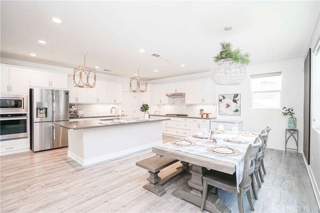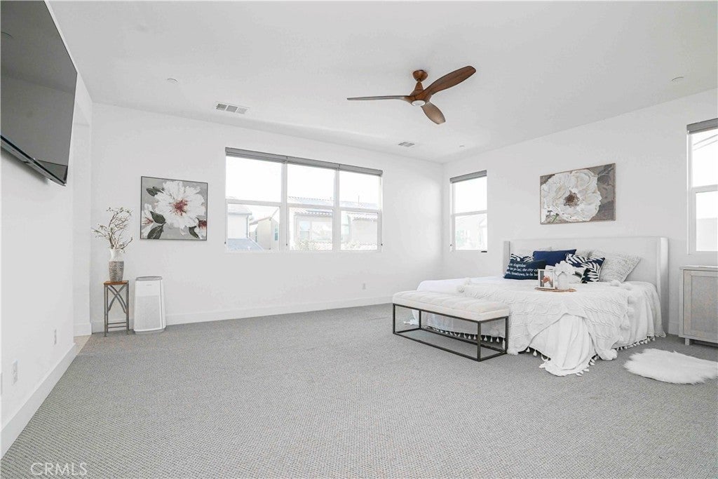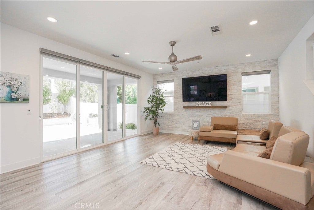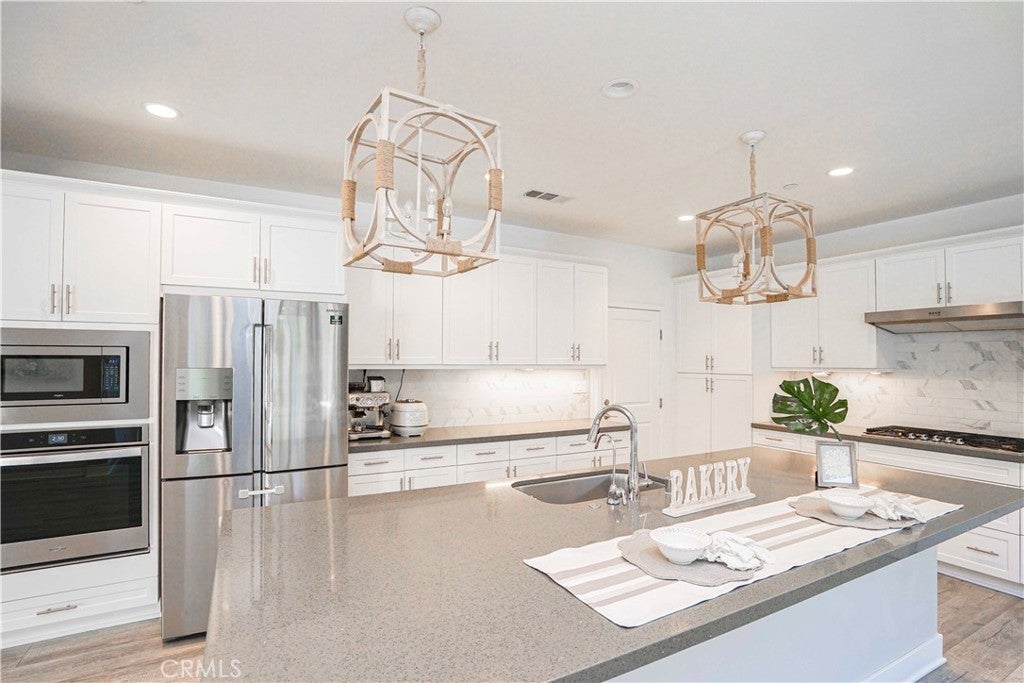 Welcome to 4128 Pompia Way, a beautifully upgraded 2019-built home located in the gated Bedford community of South Corona. This spacious residence offers approximately 2,941 sq ft of living space on an approximately 5,000 sq ft lot, featuring 4 bedrooms, 4 bathrooms, and a 3-car garage, perfectly designed for modern living. The first floor showcases hardwood flooring throughout, creating a warm and elegant atmosphere. The living room is highlighted by a custom stone veneer accent wall and a ceiling fan, providing both visual appeal and comfort—ideal for Corona’s warm climate. The gourmet kitchen is the centerpiece of the home, featuring a large center island, quartz countertops, and designer pendant lighting above the island, creating a soft and inviting ambiance. The adjacent dining area is enhanced by a beautiful decorative ceiling light, setting the tone for cozy dinners and memorable gatherings. Upstairs, the conveniently located laundry room features upgraded tile flooring, adding both functionality and a refined touch. The home is also equipped with a water softener system, providing improved water quality and added comfort throughout the entire home. The thoughtfully designed floor plan offers excellent flow, privacy, and flexibility for family living, entertaining, or working from home. One of the home’s standout features is its exceptional location—the community is adjacent to a nearby shopping plaza with Amazon Fresh, EOS Fitness, Starbucks, and urgent care, offering unmatched everyday convenience. In addition, the home is just minutes from major shopping centers featuring Best Buy, Barnes & Noble, Chick-fil-A, Target, HomeGoods, Kohl’s, and more. Residents of the gated Bedford community enjoy access to resort-style amenities, parks, pools, clubhouse, and scenic trails, along with proximity to top-rated schools, shopping, dining, and easy access to the 15 Freeway. This move-in-ready home offers the perfect combination of style, comfort, security, and convenience—don’t miss this exceptional opportunity in South Corona.