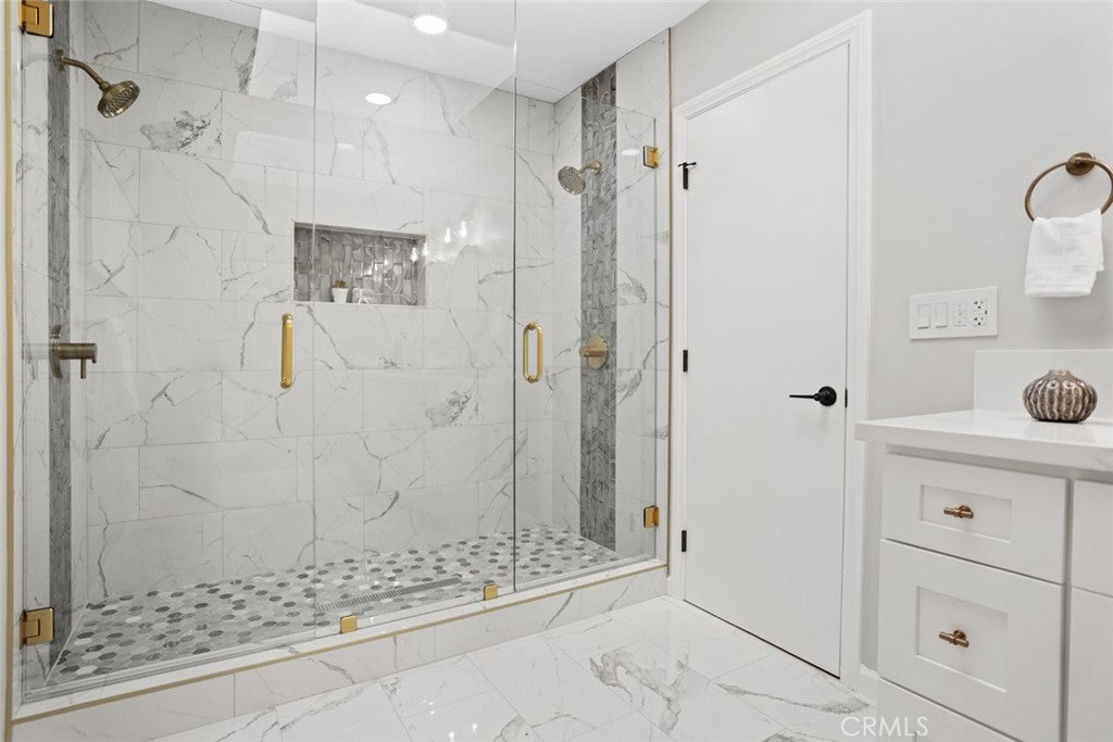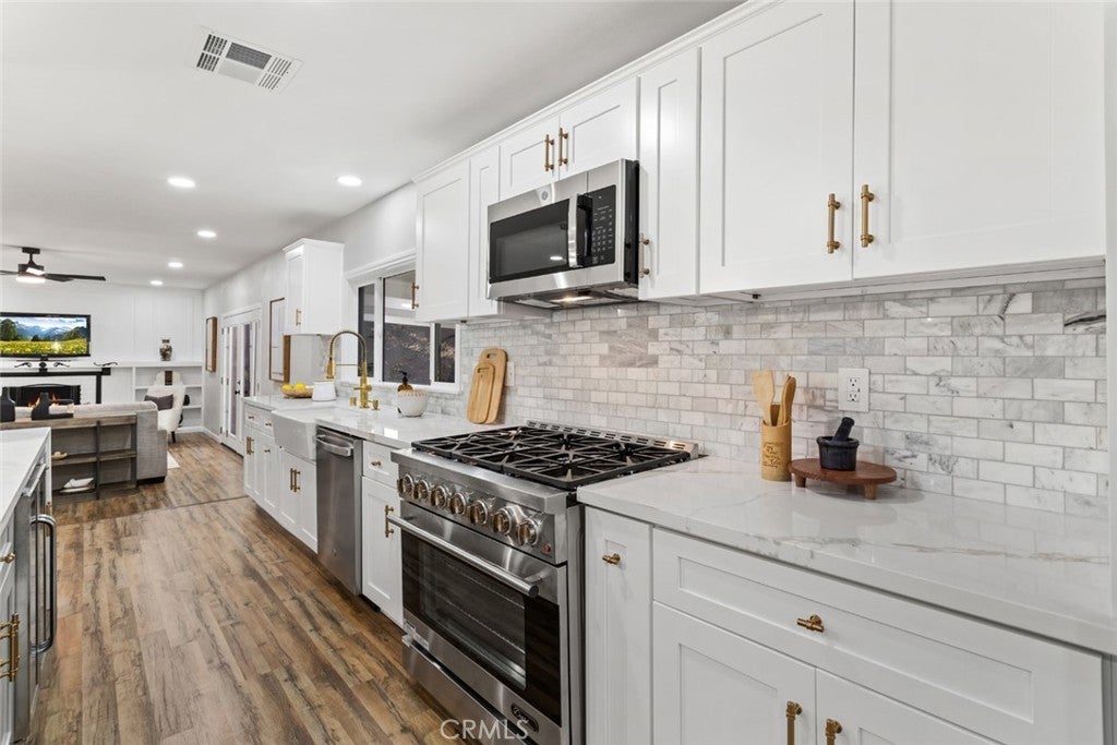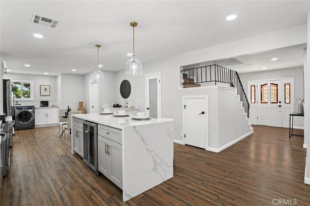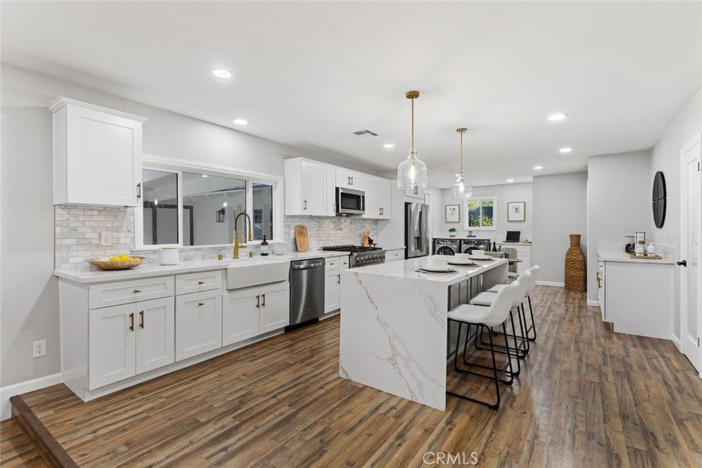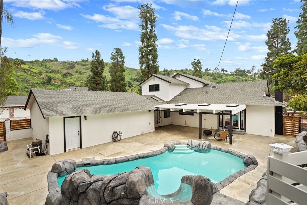 DON’T MISS OUT on this TURNKEY and spacious POOL home located on a prime corner lot and peaceful cul-de-sac in Whittier's highly desired, quiet and exclusive Forest neighborhood! To start off, this stunning home boasts 4 bedrooms and 3 bathrooms including a primary level suite with its own luxurious skylit master bathroom and his & her closets! The thoughtfully designed open and functional floor plan provides light-filled interiors and includes tasteful modern upgrades throughout - ideal for both everyday comfort and elevated entertaining! Step inside to discover the striking open-concept kitchen containing high-end quartz countertops, a center island with a waterfall finish, a farmhouse sink overlooking the backyard and white shaker cabinets with self-closing drawers! Along with the remodeled kitchen there will be a complete stainless steel appliance package and wine fridge included! This home also features a unique step-down living area complete with an elegant fireplace/mantle and flows seamlessly to the backyard patio while the spacious extra family room contains a wet bar and a cozy fireplace making both spaces inviting and entertaining for families of all sizes. Then, the grand dining room comes with cathedral ceilings, skylights and has direct access to the backyard patio! For the exterior, the front yard contains an attractive curb appeal and inviting front entry with its custom perimeter wood fencing creating both a strong presence and privacy, freshly laid sod and a wide brick-paved driveway which leads to the 3-car garage providing abundant parking and storage! Then, arguably the highlight of this home is the spacious and private backyard oasis which contains a covered patio area, a sparkling pool which includes a built-in slide and waterfall, new concrete decking and a tasteful gazebo all setting the stage for unforgettable future family gatherings and year-round enjoyment!! In addition, this home offers new LED recessed lighting, premium water-proof laminate flooring, a convenient in-house washer and dryer, copper plumbing and a central air/heating system! To top it all off, this home is ideally located just minutes away from popular Uptown Whittier shops and restaurants, Whittier College, beloved parks, scenic hiking trails and more! Overall, this home offers the rare combination of move-in-ready condition, resort-style living and being located in one of Whittier's most exclusive neighborhoods making this Forest gem a true standout.