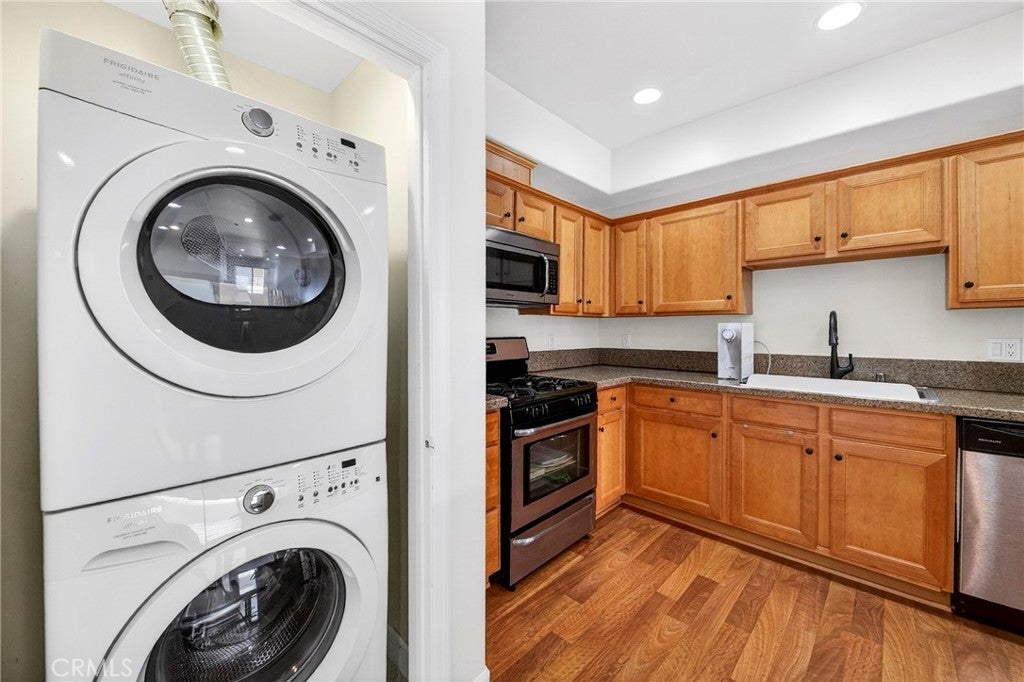 Well Maintained Condo For Sale! Grand Park Condominium 2Bed/1Bath On The Top Floor With Only 1 Common Wall Below. Spacious Rooms With Carpet Floor. Primary Bedroom Has Its Own Closet. Second Room Can Be Bedroom, Office or Hobby Room Without Closet. Spacious Living Area With Sliding Door. Granite Counter Tops In Kitchen With Island. Stackable Washer & Dryer Room At The Kitchen Area. 2 Car Assigned Tandem Parking Spaces(P9 & P10). Community EV Charging Stations Available. HOA $441.15/Month Included Water & Trash. Conveniently Location Between Korea Town & Down Town. Easy to Access Freeways. Very Motivated Seller, Make An Offer! *On Property Profile : 1bed/1bath/760sf – Buyer & Buyer’s Agent Verify & Satisfy