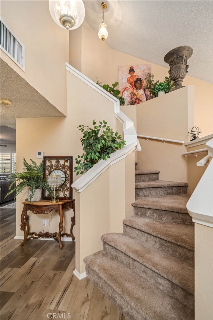 Stunning Home with Pool & RV Access in Rancho Vista! Welcome to this light and bright 4-bedroom, 2.5-bathroom home located in the Rancho Vista neighborhood of Palmdale. Featuring vaulted ceilings and high-quality laminate flooring throughout the main level, this home offers both comfort and style. The spacious kitchen boasts granite countertops and opens to the inviting family room, complete with a cozy fireplace—perfect for gatherings and relaxation. Upstairs, you'll find a convenient laundry area and plush carpeting in the bedrooms. The primary suite is a true retreat, featuring a large walk-in closet and an ensuite bath with dual sinks, a soaking tub, and a separate step-in shower. Step outside to your own private resort-style backyard, which includes a sparkling pool and spa, a covered patio for entertaining, a lush grassy area, and a large storage shed. The home also features newer windows, fresh exterior paint, and a leased solar system for energy efficiency. Additional highlights include a wide driveway with RV access and a prime location near schools, shopping, and recreational areas. Don’t miss this incredible opportunity to own a beautifully maintained home!