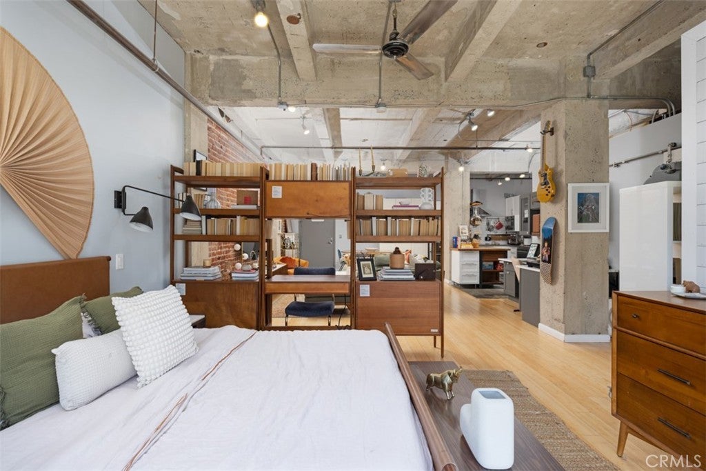 Welcome Home to 100 W 5th St Unit #3G, a true East Coast style loft in the iconic Kress Lofts in the heart of Downtown Long Beach. This open concept space blends historic character with modern design, featuring wood floors, concrete ceilings, exposed beams, original exposed brick, and dramatic floor to ceiling windows that flood the home with natural light throughout the day. The layout is both stylish and functional, offering an updated kitchen with newer stainless steel appliances, inside laundry, and a thoughtfully designed mini split HVAC system for efficient heating and cooling. Clever hidden storage is seamlessly integrated into the space, maximizing usability without compromising the clean architectural aesthetic. Assigned parking adds a rare level of convenience for downtown living. Located just blocks from Ocean Blvd with easy freeway access, this loft places you in the middle of everything Downtown Long Beach has to offer, from top tier restaurants and coffee shops to vibrant nightlife, entertainment, and cultural venues.