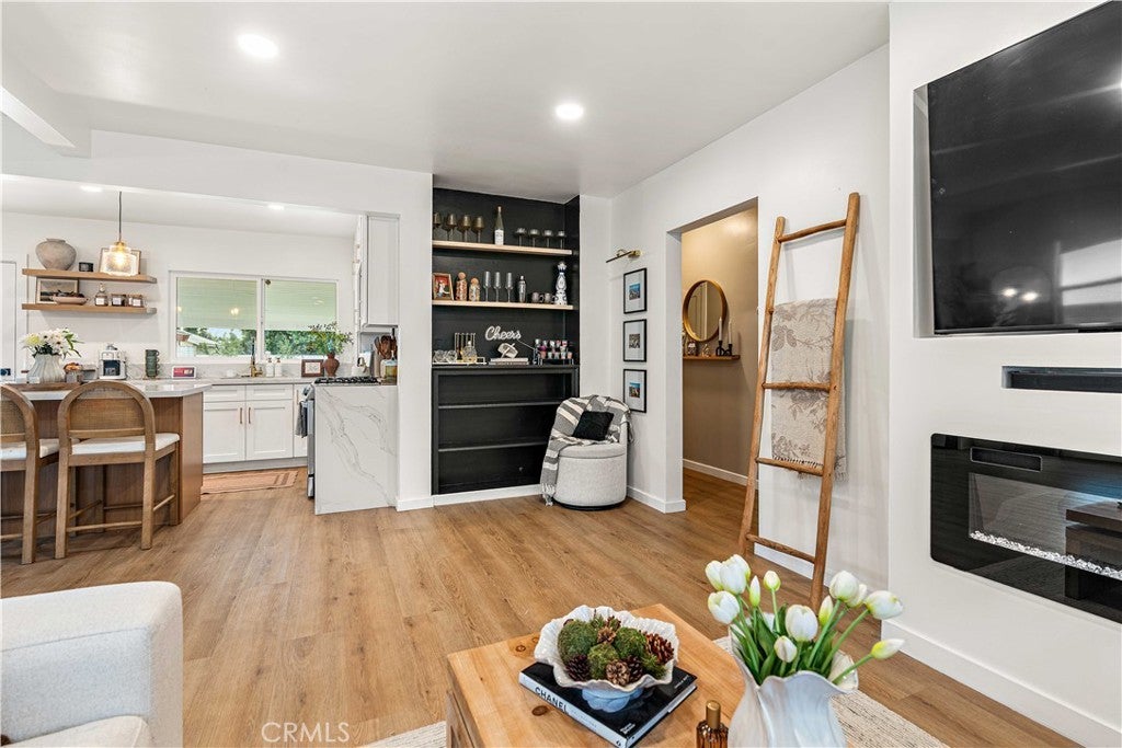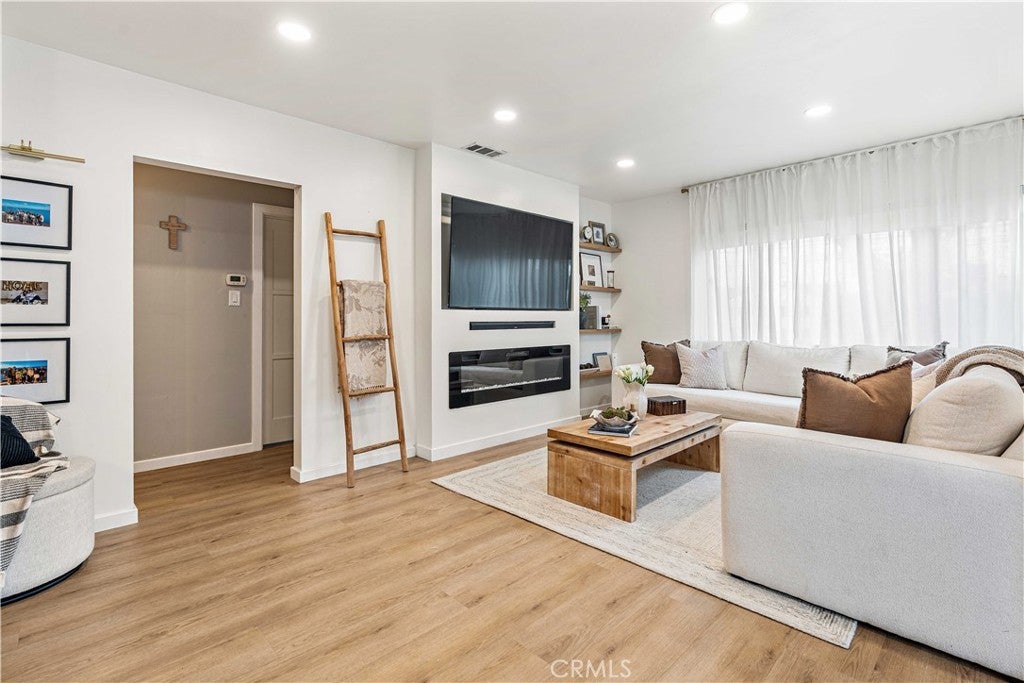 Welcome to this cozy, move-in-ready single-story home featuring modern upgrades throughout. Enjoy luxury vinyl flooring, a custom fireplace TV wall with recessed mount, and a beautifully remodeled kitchen completed within the last 12 months. New appliances are included, along with a washer and dryer for added convenience. The bathroom has been fully remodeled, and the home features upgraded windows and doors, a new 50-gallon water heater, and a freshly painted exterior. Step outside to a landscaped yard with lighting, newly added stamped concrete, a new patio cover, and vinyl gates—perfect for relaxing or entertaining. This home is truly turnkey and ready for its next owner.
