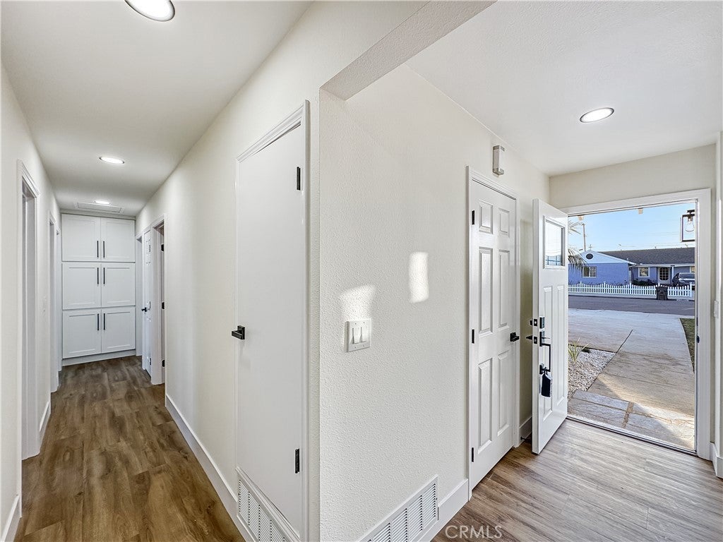 This home is 1,289 square feet on title and has a 291 square foot enclosed patio that feels like an extension of the home. This beautifully reimagined 4-bedroom, 2-bathroom single-story residence in the heart of Huntington Beach offers the perfect blend of coastal style and modern efficiency. Step inside to discover a bright and open floor plan featuring all-new luxury vinyl flooring throughout, accented by elegant 6-inch baseboards and a fresh, contemporary palette. The chef-inspired kitchen is a true standout, boasting brand-new quartz countertops and crisp white shaker cabinets equipped with soft-close doors and drawers for a premium feel. Every detail has been addressed for peace of mind and comfort, including all-new windows, new interior and exterior doors with updated hardware, and a new garage door with a modern opener. Behind the scenes, the home features a near-new AC and heating system along with updated ductwork. Both bathrooms have been tastefully updated, highlighted by custom seamless shower doors that add a touch of spa-like luxury. Located in a quiet, sought-after neighborhood just minutes from the beach, world-class shopping, and top-rated schools, this turn-key property is ready for you to move in and enjoy the quintessential California lifestyle.