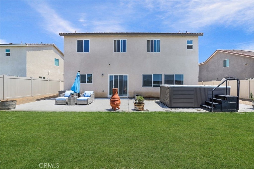 Welcome to this stunning 4-bedroom, 3.5 bathroom single-family home, built in 2022 and located in a quiet cul-de-sac with no HOA. A standout feature is the potential income-producing ADU with its own private front entrance, kitchenette and bathroom ideal as a rental unit, mother-in-law suite, or multigenerational living space. This modern residence offers a spacious open floor plan with new luxury vinyl plank flooring, a chef’s dream kitchen featuring a large center island with breakfast bar, white quartz countertops, upgraded appliances, designer lighting, pantry and abundant cabinet storage. The open concept family room is perfect for relaxing or entertaining, while the upstairs loft provides a flexible space for a home office or kid’s playroom. The private master suite includes a generous walk-in shower and spacious walk-in closet. Enjoy the beautifully landscaped backyard with grass, no neighbors behind, and an 18ft above-ground spa, along with low-maintenance front landscaping. The property also includes a spacious garage with home gym potential, alkaline water filtration system, paid-off solar panels, vinyl and brick fencing, and a full security camera system. Best of all, this home is in a newly completed neighborhood with access to finished community amenities including a playground, basketball court, and pavilion, just a short walk away. This home offers a unique advantage with no neighboring property directly behind, providing enhanced privacy and peaceful mountain top view. Move-in ready and offering modern comfort, energy efficiency, and privacy. This home has it all!