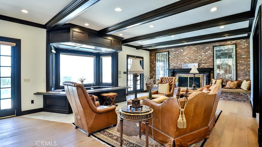 - Interior FeaturesBeamed Ceilings, Balcony, Crown Molding, Granite Counters, High Ceilings, Multiple Staircases, Pantry, Recessed Lighting, Storage, Bedroom on Main Level, Main Level Primary, Walk-In Closet(s), Wine Cellar