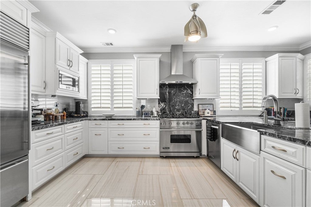 • AppliancesSixBurnerStove, Double Oven, Dishwasher, Disposal, Range Hood, Ice Maker