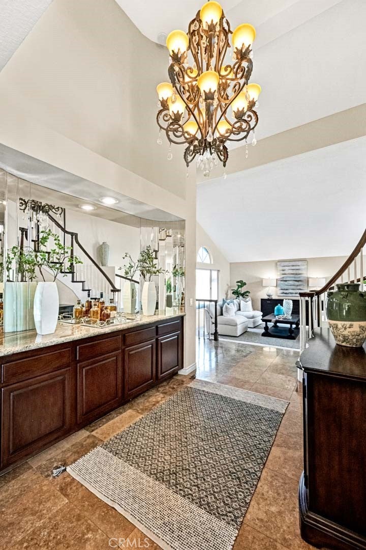 - Interior FeaturesBreakfast Bar, Cathedral Ceiling(s), Separate/Formal Dining Room, Eat-in Kitchen, Granite Counters, High Ceilings, Open Floorplan, Bedroom on Main Level, Walk-In Closet(s), Brick Walls