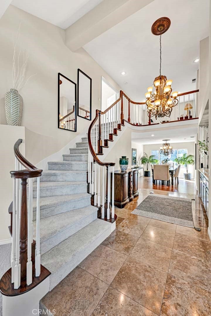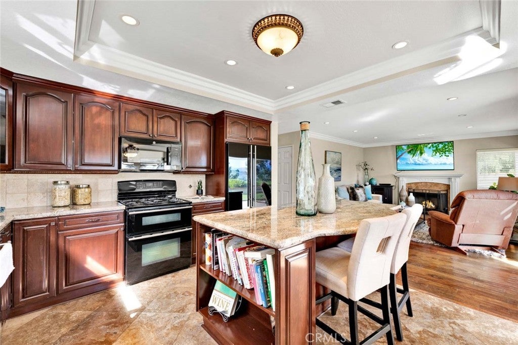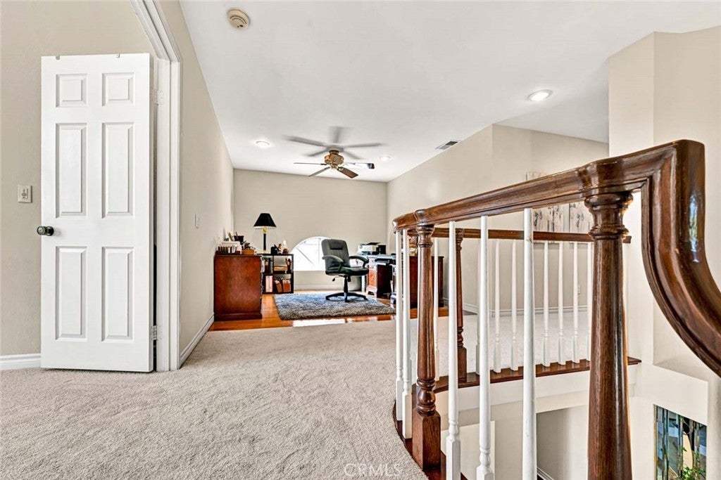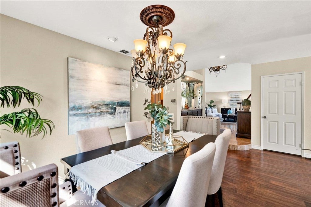 Are you looking for a turn key home with a fabulous views? This is the house for you. Open floor plan & recently painted interior and new carpets. As you arrive you will be impressed by the great curb appeal. As you walk up to the double door entry you will notice the professional landscaped entry. Through the front door you will find a very inviting interior which will feature an open house concept, vaulted ceilings and a very spacious living room for your entertaining. Adjacent to the living room you will welcomed to the formal dining room which will be perfect for your dinner guests. From the formal dining room you will enter into the open family room and remodeled kitchen. The spacious family room has a gas fireplace and will be a great area for you and your guests to congregate to watch those sporting events or just to relax around the fireplace. The kitchen is truly for the gourmet cook. The kitchen features a beautiful island, granite counter tops, beautiful wood cabinets, and stainless steel appliances. There is a downstairs bedroom & 3/4 bath for your guests. Upstairs you will find 3 bedrooms and a wonderful office area. The primary bedroom is very spacious and welcoming. The primary bathroom has been remodeled and features include granite counter tops, tile flooring, bath tub and separate shower. Also incudes a walk in closet. The bonus room located in the front of the house is large enough to be a game room, bedroom, office or reading room with a library which already have huge built in book cases. The back yard area will be great for entertaining. It has a grass area & a built in BBQ. Other backyard feature is the covered patio were you can enjoy a cup of coffee or a glass of wine. The valley views from the backyard are captivating. This home is located in High Horse Trails. There are stables which are available to residents on an availability basis, there is availability now for residents with horses. The home is close to shopping, freeways, parks & 241 toll road. This is a great area for those that like outside living.
