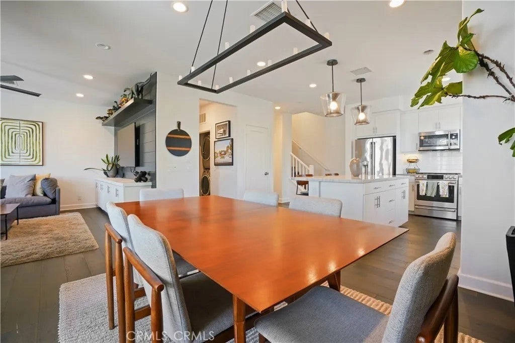 Experience modern living in this beautifully townhome-style condo, where comfort meets sophistication and thoughtful design. Motivated seller will credit 15k to the buyer the use of ONE of these options: a mortgage rate buydown, credit toward closing cost or reduction of price. 4 bedroom 2.5 bathroom, a light-filled open-concept layout creates an inviting, yet refined atmosphere, expansive living and dining areas offer seamless flow for entertaining and everyday living, large windows fill the home with natural light that enhances its warm, upscale feel, and a thoughtfully designed flooring and bedroom carpet. The modern kitchen showcases quartz countertops, an island, stainless steel appliances, upgraded soft close cabinetry with new hardware, backsplash, a large Island, luxury flooring throughout adds durability and elegance. Bathrooms feature updated vanities, contemporary fixtures, walk-in shower, tub, recessed lighting, and upgraded finishes, along with a walk-in closet, plenty of linen closets, and entertainment centers in both first and second-level living rooms, where functionality is key. Every space feels polished yet welcoming, supporting a relaxed and sophisticated lifestyle perfect for quiet evenings, entertaining guests, or working from home in a bright, inspiring environment. A private rooftop space adds a rare and desirable outdoor extension of the home, ideal for enjoying fresh air, relaxing, or gathering with friends to enjoy the fireworks show from Disneyland. The well-maintained community grounds provide a welcoming neighborhood setting with a sense of privacy while still being moments from Downtown Anaheim, the Anaheim Packing House, shopping, dining, entertainment, and convenient freeway access. This residence also offers fully paid solar energy efficiency and long-term savings, EV charging access for modern convenience, a direct access attached two-car garage plus two additional assigned parking spaces, and desirable HOA amenities including BBQ areas, firepit sitting area, greenbelt/pet friendly walk areas, enhancing everyday lifestyle and value in one of Anaheim’s most connected locations. Communter -close to 5, 57 and 91 freeways. Hurry! Make this your beautiful home and start creating unforgettable memories.