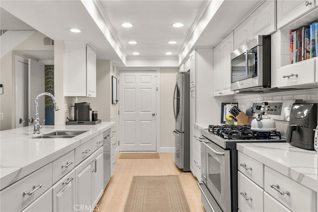 Rarely does a home of this caliber become available for lease. Never before rented and lovingly remodeled by discerning owners, this exceptional two-story townhome has been reimagined from top to bottom with exquisite finishes worthy of Architectural Digest. Perfectly situated on the ocean side of San Clemente, just steps from the beach, acclaimed restaurants, and convenient shopping, the home also backs to a serene green park where birdsong and ocean breezes create a tranquil backdrop for everyday living. A cheerful blue front door welcomes you into a bright, airy interior featuring crisp white walls and beautiful vinyl flooring throughout, perfectly showcasing the home’s designer aesthetic. The spacious family room, anchored by a cozy fireplace, invites relaxation, while the stunning gourmet kitchen—fully remodeled with impeccable taste—is a space you’ll love gathering in to cook, dine, and entertain. A stylish powder bath and direct access to the two-car garage complete the main level for effortless everyday living. Upstairs, all three bedrooms are generously sized with ample closet space and pleasant views, while the primary suite is a true showstopper. The ensuite bath is nothing short of spectacular, and every bathroom in the home reflects thoughtful, high-end design. Step onto the private deck off the primary bedroom to enjoy a good book or a sun-soaked afternoon nap, or retreat to the secluded patio off the family room—perfect for entertaining friends and family while enjoying San Clemente’s idyllic year-round coastal climate. This one-of-a-kind townhome offers a rare opportunity to lease a truly top-tier residence. Homes like this come along once—move quickly before someone else is lucky enough to call it home.
