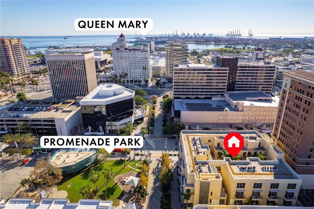 A rare Shopkeepers mixed-use, work-live residence offering flexibility in the heart of Downtown Long Beach, the Promenade. This unique property features two spaces with separate private entrances, ideal for owner-occupants or investors seeking a versatile, income-producing opportunity. The ground-level retail/office storefront offers excellent visibility and foot traffic. The Promenade Parking Garage offers additional Parking for your business. This shopkeeper space includes an accessible restroom and an adaptable layout that can easily accommodate a wide range of uses, including retail, professional office, creative studio, consulting, wellness services, showroom, music or artist room, or client-facing business. The living space includes 2 spacious bedrooms and 2 full bathrooms. The living room and Dining area offer abundant natural light, with floor-to-ceiling windows and high ceilings. The home includes a washer & dryer, new A/C, a tankless water heater, and newer appliances, as well as beautiful Bamboo flooring and a walk-in closet. The home features 2 outdoor patios and additional storage. HOA amenities include a fitness center, yoga room, Clubhouse Billiard Room, Banquet Facilities, Meeting Room, Work Room, and Bike Room. Storage, Paid Cable TV, & High-Speed Internet, Insurance, Trash, Water. 24-hour Management & Security, Controlled Access, and a Courtyard Lounge with a Fire Pit. The Promenade in Downtown Long Beach (DTLB) is a modern, walkable, vibrant urban neighborhood featuring contemporary, high-density residential buildings. DTLB is characterized as a walkable, bike-friendly corridor and highly dense area that blends urban living with proximity to the waterfront—connecting dining, shopping, and entertainment, representing a quintessential modern, mixed-use coastal, "blue" community.