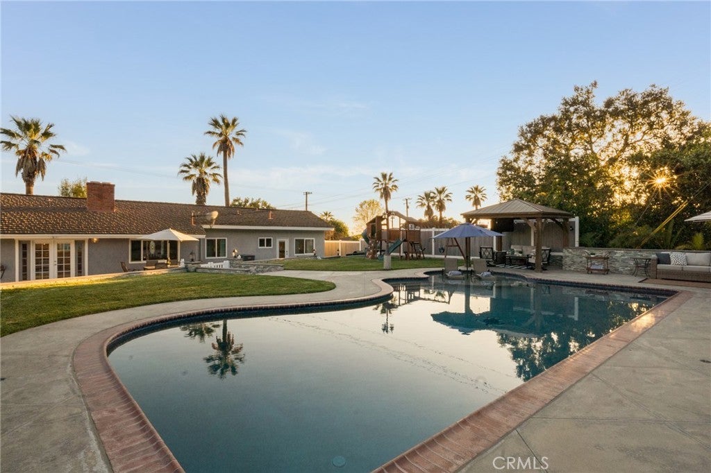 Spacious California ranch-style home located in one of Glendora’s desirable foothill neighborhoods, set on an expansive 15,600 sq. ft. lot with scenic foothill and mountain views. This well-maintained residence offers 4 bedrooms and 2 bathrooms with approximately 1,759 square feet of living space, plus an additional approximately 400 sq. ft. finished bonus room currently used as a family room, creating roughly 2,200 sq. ft. of functional living area. The bonus room seamlessly integrates with the main living space and offers flexible use for a recreation room, home office, gym, or additional living area; the space is not included in the official square footage. With its wide frontage, large lot, and resort-style backyard, the property offers a rare mini-estate feel and true indoor-outdoor Southern California living rarely found in this established Glendora neighborhood. Recent improvements include brand-new windows, updated plumbing, and a new sewer line to the street installed less than two years ago. The standout feature is the private backyard oasis, featuring a large in-ground pool finished with custom PebbleTec less than 18 months old, spacious patio areas, gazebo seating area, and generous lawn space ideal for entertaining, gatherings, and year-round outdoor enjoyment. The backyard has been completely remodeled within the last 36 months, including upgraded concrete, planters, and landscaping that enhance the outdoor living space. The oversized driveway provides ample parking with potential RV access, and the home is conveniently located near parks, hiking trails, and within the highly regarded Glendora Unified School District.