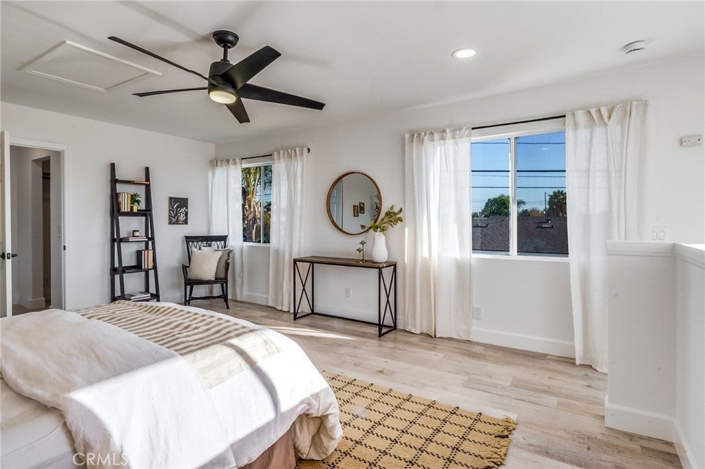 Spacious and beautifully updated two-story home located in a well-established Westminster neighborhood, offering exceptional functionality, natural light, and flexible living. This 4-bedroom, 3-bath residence features approximately 2,100 square feet of living space on a generous 7,200 square foot lot and includes a highly desirable dual primary suite layout, with one bedroom and full bath on the main level and an additional primary suite upstairs—ideal for multigenerational living, guests, or added privacy. Designed for both everyday comfort and entertaining, the home offers multiple living areas with seamless flow between spaces. The remodeled kitchen opens to the dining area and overlooks the backyard, creating an inviting, connected layout, while large sliding glass doors provide abundant natural light and direct access to the covered patio, enhancing indoor-outdoor living. Additional highlights include recessed lighting, updated flooring, and a cozy fireplace in the main living room. The expansive backyard offers a private setting with open lawn space and plenty of room for entertaining, gardening, or future customization. A long driveway and attached 2-car garage provide ample parking and convenience. Ideally located near local schools, parks, shopping, and dining, this home presents a rare opportunity to own a well-maintained property with a flexible layout in a desirable Orange County location.