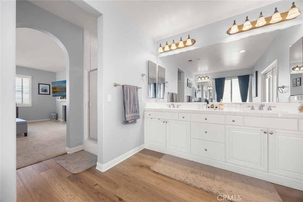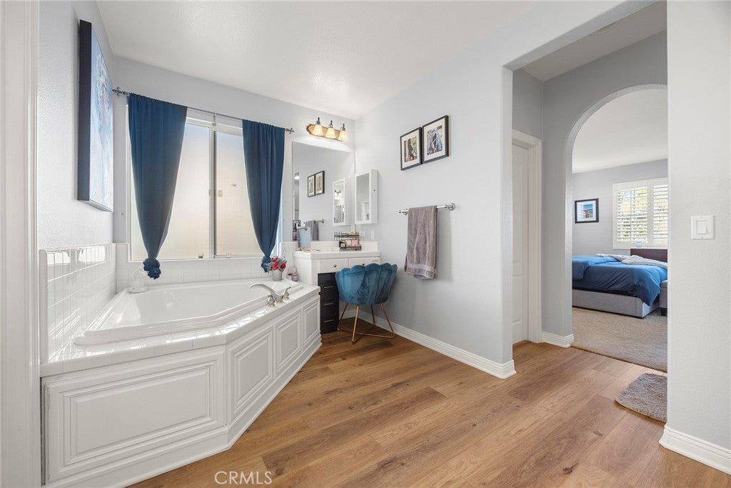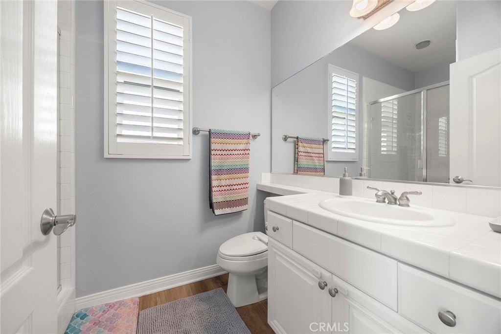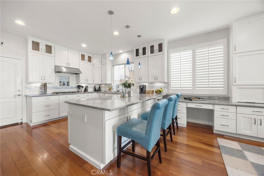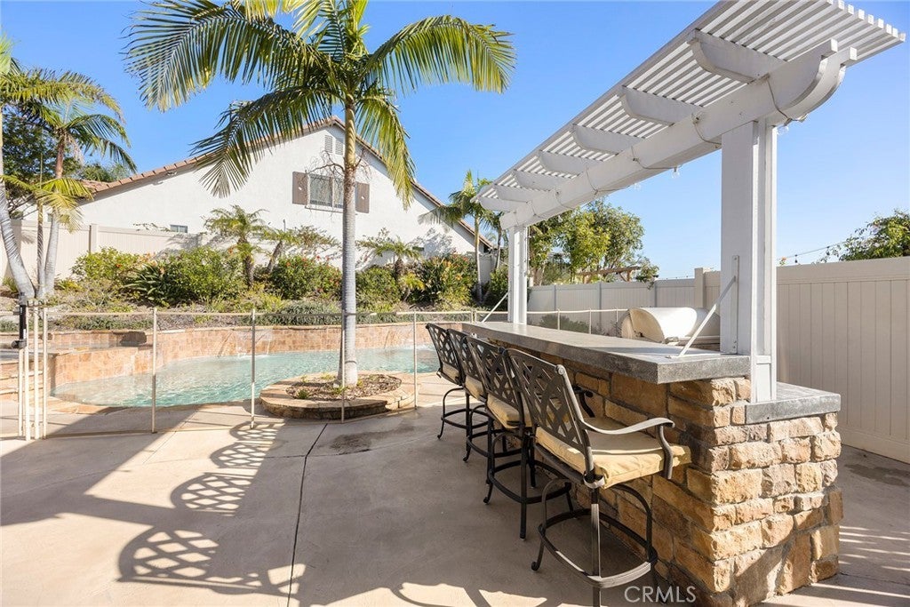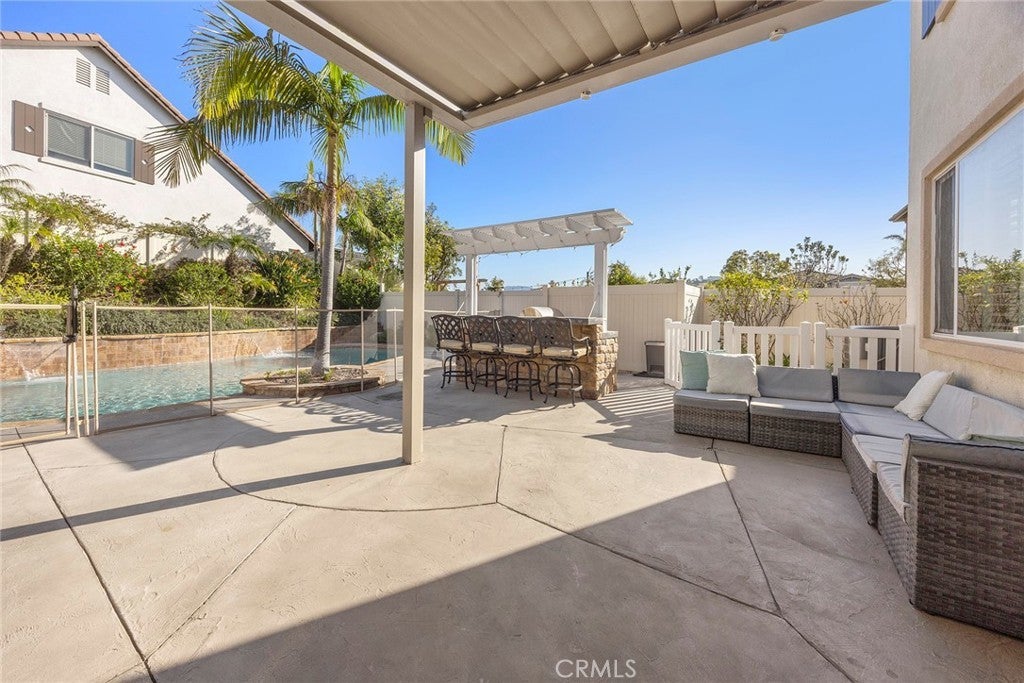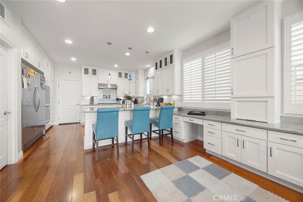 This pristine executive home is now available for lease and presents a striking first impression, with attractive neutral wall tones, smart plantation shutters, and handsome hardwood flooring. Step into the inviting entry that opens to elegant formal living and dining rooms, highlighted by a warming fireplace, ideal for entertaining or quiet evenings at home. The oversized kitchen is both stylish and highly functional, featuring abundant storage in crisp white cabinetry, sleek countertops, a dining counter, and premium stainless appliances including a multi-burner range with hood, built-in refrigerator, double ovens, and the walk-in pantry is a real plus. A built-in meal-planning desk sits conveniently adjacent to the family room, which offers its own cozy fireplace and an easy flow for everyday living. A private executive office on the first level is enclosed by attractive glass French doors, plus a desirable downstairs bedroom and private bath completes the main level. Upstairs, the expansive primary suite is a true retreat, complete with a separate sitting area that shares a dramatic see-through fireplace. You will luxuriate in the spa-inspired primary bath with soaking tub, separate shower, and dual vanities, plus a large oversized walk-in closet. Three additional bedrooms, and a convenient upstairs laundry area completes the upper level, allowing plenty of room for residents to enjoy comfort, and convenience for everyone. The private backyard is designed for relaxation and entertaining, featuring an adjustable patio cover, so you can enjoy your sunny or shady moments outdoors, built-in BBQ center, small grassy yard, and a sparkling pool and spa (including safety fencing to protect the little ones). This Serrano Heights property attends the finest schools, and is near shopping, restaurants and so much more. Your own private oasis for year-round enjoyment awaits.