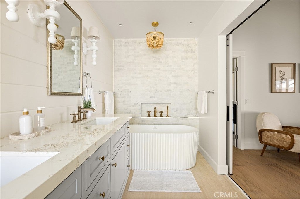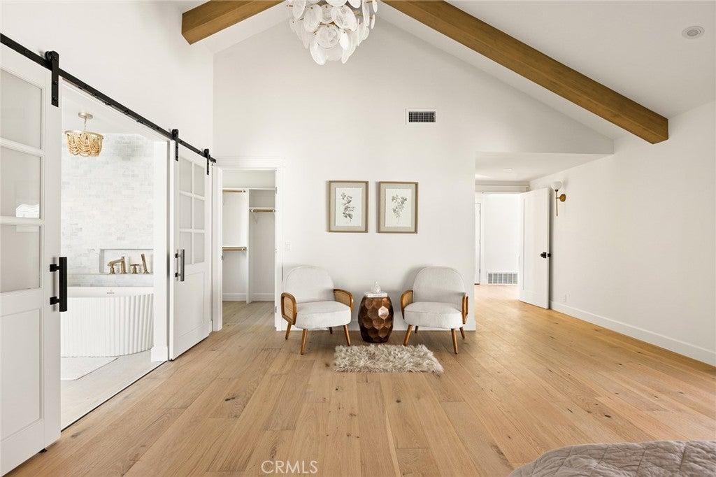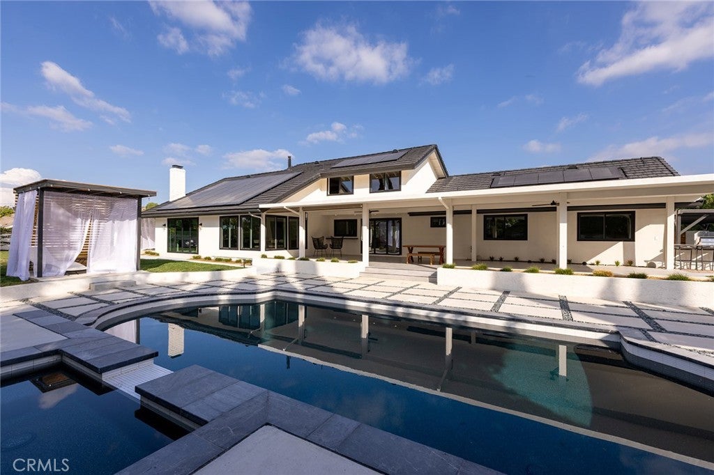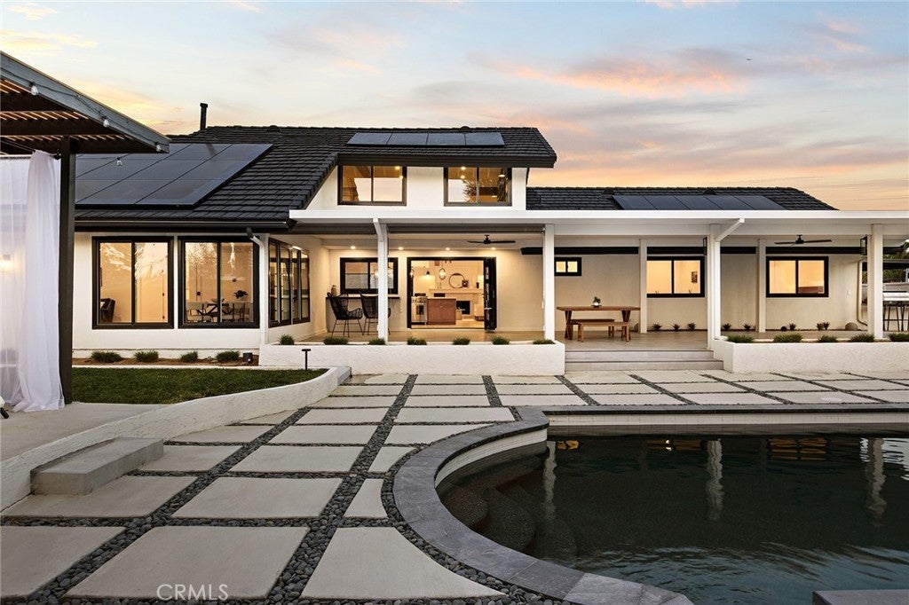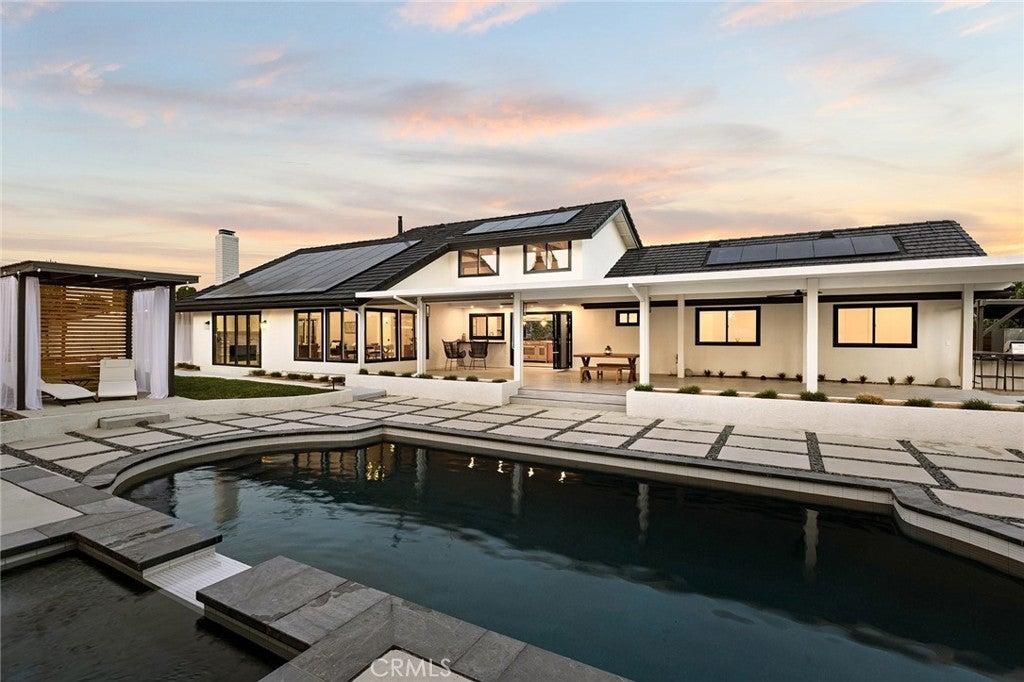Introducing a rare expression of refined California living, this completely reimagined Villa Park farmhouse estate is a masterfully curated vision brought to life by IAM Design.Privately situated on an expansive half-acre lot, this 4-bedroom, 3.5-bath residence blends sophistication and comfort with effortless indoor-outdoor living.More than a home, it is an art form, where every detail has been masterfully considered and thoughtfully executed to create a cohesive and timeless living experience.Classic and modern details blend to adorn this beauty from the entry and throughout.Sun-filled living spaces flow seamlessly from room to room,unified by warm wood beams and designer finishes that create both cohesion and character.At the heart of the home, the chef’s kitchen is a true showpiece,featuring custom cabinetry, striking checkered tile, JennAir appliances, and a Bertazzoni Professional range.A well-appointed butler’s pantry provides additional storage and prep space.The primary suite is a private sanctuary, thoughtfully designed for rest and retreat, complete with its own secluded outdoor space for quiet mornings or evening unwinding. A spacious walk-in closet features floor-to-ceiling custom shelving, cabinetry,and hanging space.The spa-inspired bath showcases impeccable finishes, Brizo fixtures and a serene ambiance reminiscent of a luxury retreat.A secondary suite provides ideal accommodations for extended family or guests, while each additional bedroom is generously proportioned and complemented by beautifully appointed bathrooms that reflect the home’s complete transformation and commitment to luxury.Upstairs, a thoughtfully designed living space with extensive built-ins offers inviting sight lines throughout the home and across the property.Fully retractable sliders open to a backyard that feels like a private resort.The beautifully redesigned dark-trimmed saltwater pool and spa serve as a striking focal point, recently completed with all-new, state-of-the-art equipment to ensure both performance and peace of mind. An oversized patio, built-in BBQ, and covered cabanas create the ultimate setting for hosting gatherings or enjoying quiet evenings under the California sky.Located in one of Orange County’s most prestigious and sought-after communities, this Villa Park estate represents turnkey California living at its finest.This is not simply a residence — it is a place to put down roots, create lasting memories, and confidently call your forever home.