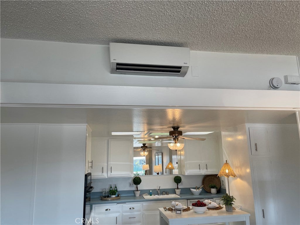 This 2 Bedroom Corner is loaded…. 2 Heat Pumps, 2 Skylights, Washer/Dryer, Dishwasher, Built in Microwave, Glass Sliding Doors for Front Patio, Master Bedroom and Front Entry, a Cut Down Shower, Ceiling Fan and Freshly Painted. The Front Garden is waiting to be Beautiful again! The Flooring is fairly new wood look in Living Area and both Bedrooms. The Patio has a Storage Closet with Shelves and Drawers. M4 87F Parking is Bldg 56 Space 36 with even more storage.