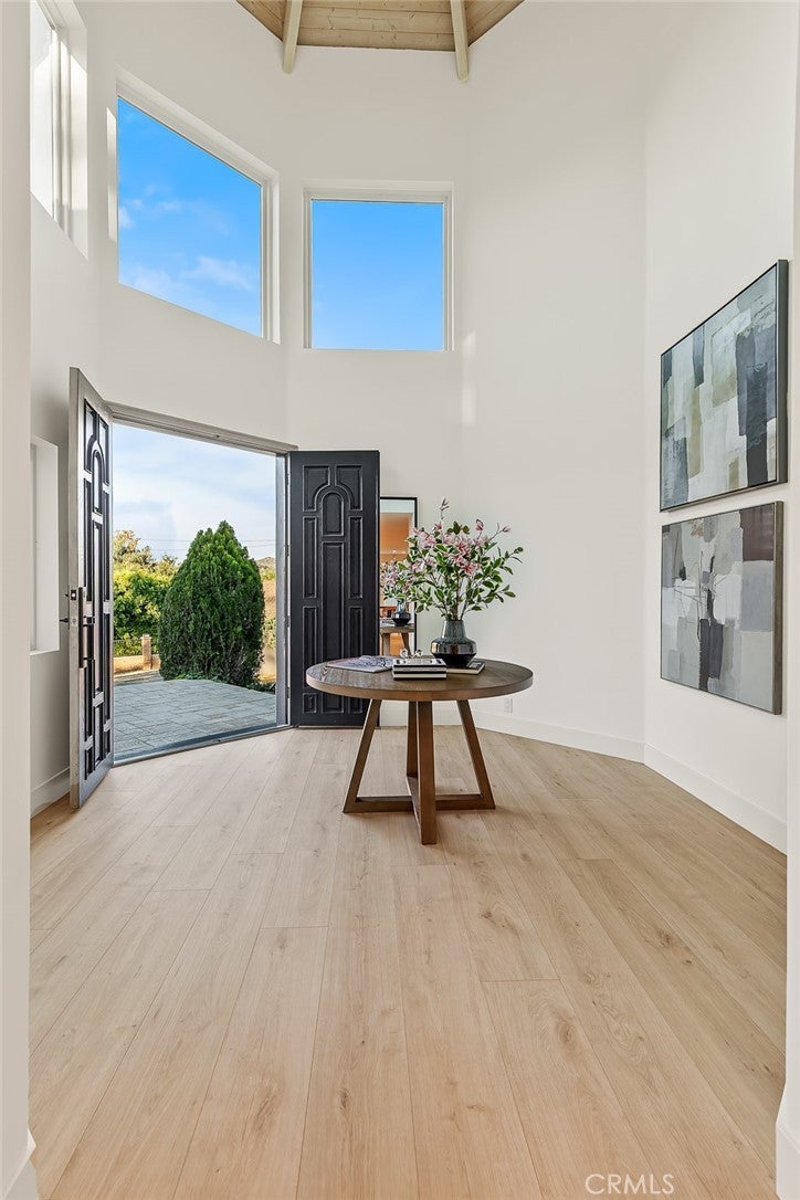 Discover an extraordinary opportunity to own one of Orange Park Acres most impressive gated estates. This newly reimagined 3,381 sq ft architectural showpiece blends refined design, privacy, and modern luxury in a tranquil countryside setting. A dramatic 22-foot custom gate opens to an expansive driveway designed to accommodate guests with ease. The striking exterior showcases a turret-style entry, Standing Seam metal roof with copper gutters, smooth three-coat stucco, and sleek aluminum-and-glass garage doors—delivering both elegance and durability. Inside, you’re welcomed by sustainable European flooring, custom Andersen windows, and a light-filled open layout. The chef’s kitchen is a true centerpiece, featuring Taj Mahal quartzite waterfall island, custom cabinetry, floating shelves, a 60” Wolf dual-fuel range, Sub-Zero Pro 48” refrigerator, dual Fireclay farmhouse sinks, and Brizo Litze Gold fixtures. Designed for both entertaining and daily living, this space is as functional as it is stunning. The primary suite offers a spa-inspired retreat with a freestanding soaking tub, oversized rain shower with natural stone surround, and premium Kohler smart toilets. A Navien tankless water heater ensures long, relaxing evenings of comfort. Outdoors, enjoy terraced grounds, mature trees, mountain views, and a beautifully hardscaped patio. The restored barn with covered stable offers flexibility for equestrian use, car collection, events, or creative space. Opportunities like this in Orange Park Acres are rare. Schedule your private tour today—this exceptional estate will not last.