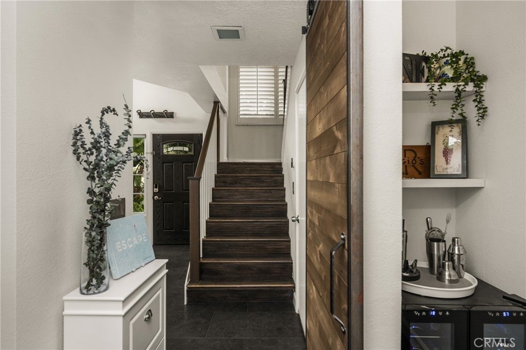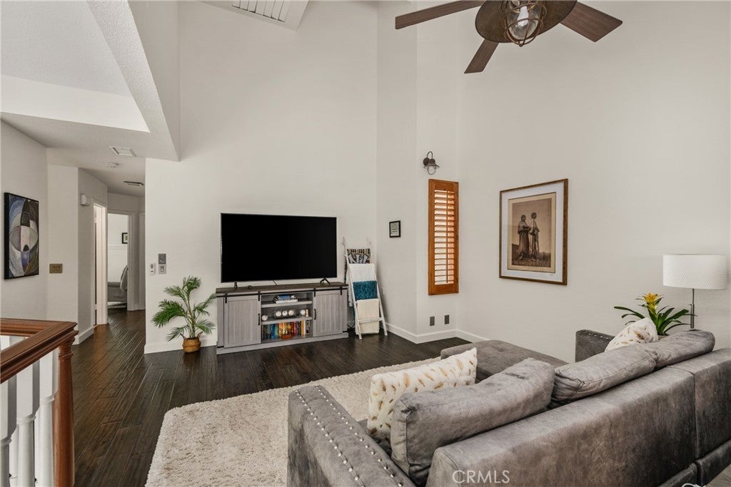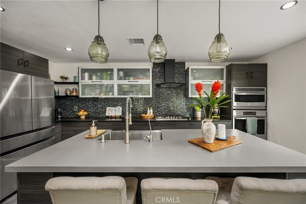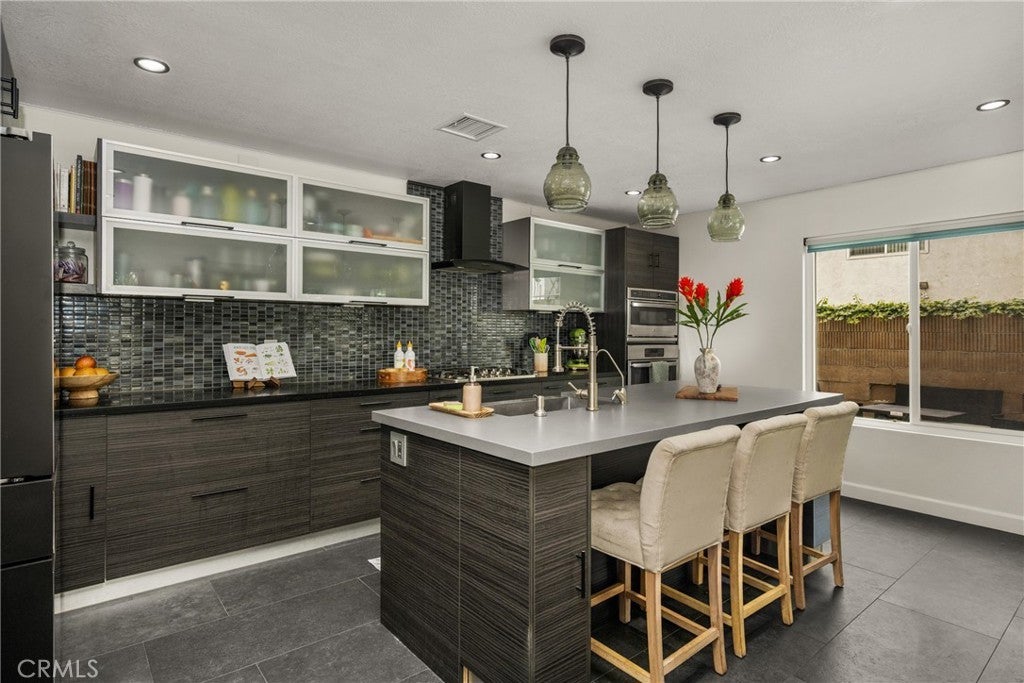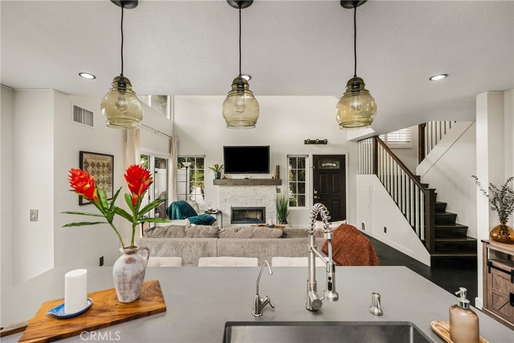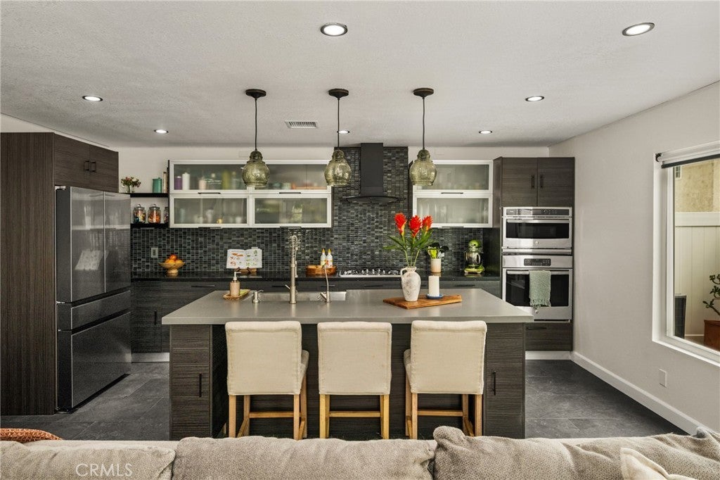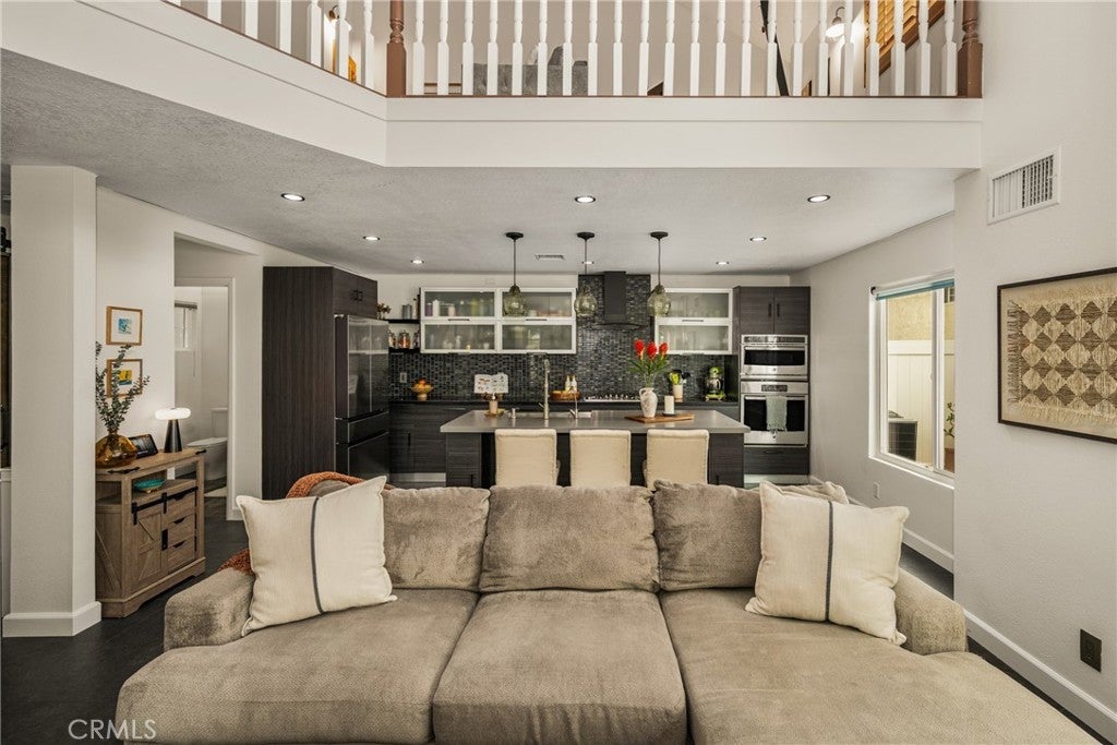 Discover a rare standout where contemporary design meets spacious, airy living. This impeccably renovated 2-bedroom, 2.5-bathroom townhome offers a level of style and volume rarely seen at this price point. From the soaring vaulted ceilings to the high-end finishes, every inch of this home has been curated for the modern buyer. The main level features an extremely open floor plan bathed in natural light. The showstopper is the fully renovated chef’s kitchen, boasting sleek dark cabinetry, premium stainless steel appliances, and a massive waterfall-edge island that overlooks the living area. Transition seamlessly through sliding glass doors to your large private patio, an ideal retreat for summer dining or evening drinks by the fire. Upstairs, the home continues to impress with a huge, versatile loft- whether you need a sophisticated home office, a secondary media lounge, or a guest space, this area provides the square footage to make it your own. The primary suite is a true sanctuary featuring a large footprint, a massive walk-in closet, and a newly renovated ensuite bathroom with designer tile and luxury fixtures. Located in a highly walkable pocket of Tustin, you are just minutes away from local boutiques, trendy dining, and major freeways for an easy commute. Offered at just $820,000, this is an incredibly rare opportunity to own a turnkey, designer-finished home in one of Orange County’s most sought-after communities.