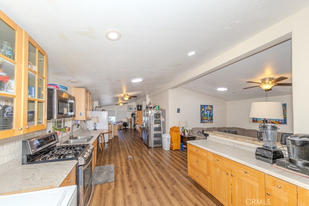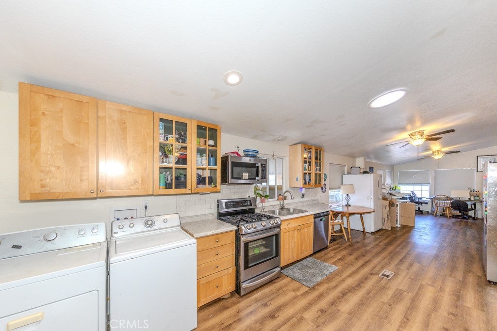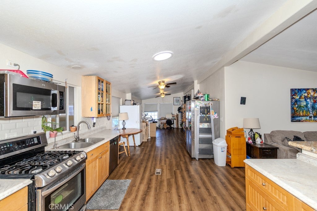 Set in Fountain Valley Estates at 9320 Talbert Ave in Fountain Valley, this updated 3-bedroom, 3-bath manufactured home with a bonus room offers 1,344 sq ft of single-level living. Built in 1996 and extensively improved, the home features a newer roof, interior and exterior paint, updated plumbing and electrical, and multiple interior upgrades completed between 2021 and 2024. The open concept floor plan connects the living area, dining space, and kitchen. The kitchen includes Formica counters, a new backsplash, wood shelving, and stainless steel appliances including a 2024 refrigerator, gas range, oven, microwave, dishwasher, and garbage disposal. An osmosis water system is connected to the kitchen sink and refrigerator. New lighting, switches, and ceiling fans were added throughout the home along with new faucets, baseboards, and hardware. The primary bedroom includes a custom wall unit in the closet and an attached bonus room suitable for a private office or seating area. The en suite bath features a remodeled vanity, mirrors, and a walk-in shower. All three bathrooms were updated with new showers, fixtures, and lighting. Additional improvements include new flooring and subfloors, two solar tubes for added natural light, new plumbing for the washer and dryer, and motion sensor lighting at the carport. This home includes a two-car carport and a storage shed. The property is connected to public utilities including gas, water, sewer, and electricity with central forced-air heating. Located near the clubhouse, the home enjoys access to community amenities at Fountain Valley Estates, a land-leased park with 192 home sites. Amenities include a large clubhouse with kitchen and TV area, heated pool and spa, pool restrooms, basketball court, enclosed dog park, on-site laundry room, car wash area, greenbelt, and on-site management. One small indoor pet is permitted with park approval. Six-foot fencing is allowed. A monthly land lease applies and park approval is required for residency. Fountain Valley Estates offers a convenient suburban location near major destinations. Approximately 2 miles to Mile Square Regional Park, 4 miles to Bella Terra, 7 miles to Huntington Beach State Beach, and 8 miles to South Coast Plaza. Close to local parks, schools, shopping, restaurants, and transportation routes with the cross street at Talbert Avenue.