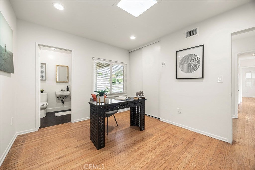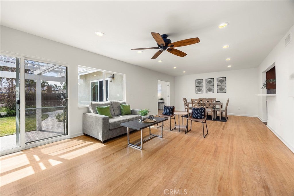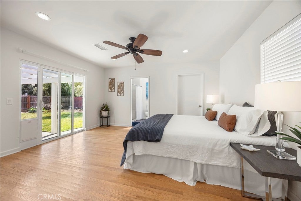 If family & education are your priorities, then this home is for you! Located in award winning Fullerton Unified School District, this 5 bedroom, 3.5 bathroom home is situated on a picturesque, tree-lined street. This single level ranch style home is in a neighborhood that reflects pride of ownership. It’s perfect for buyers seeking a multi-generational living arrangement. Sliding glass doors in the living room maximize views of the spectacular yard beyond. You'll love the open floorplan where living room is adjacent to dining area & updated kitchen, making entertaining easy. It takes advantage of California’s indoor, outdoor living lifestyle. 2 primary suites provide restful sanctuaries. Both have en suite baths. Two secondary bedrooms share a full hall bath. Currently utilized as a home office, the versatile fifth bedroom is ideally located at the front of the home. It offers privacy & convenience. With its own half bath/powder room and adjacent to the kitchen, the space is perfectly suited for remote work, a guest room, or a flex space to fit your needs. Hardwood floors, recessed lights, updated baths and updated kitchen allow you to move in. You can always personalize your home in the future. Inside laundry & 2 car garage are convenient. Central air & heat systems along with ceiling light fans throughout provide comfort in all seasons. Step outside to a charming patio with pergola that creates the perfect setting for relaxing or dining al fresco. This inviting outdoor space offers filtered sunlight & a comfortable shaded retreat, ideal for morning coffee, weekend brunches, or evening dinners under the stars. Whether hosting friends or enjoying a quiet meal outdoors, the semi-covered patio adds both character and functionality, extending your living space into the fresh air. Expansive 8,382 square foot lot provide possibilities for outdoor living, play & gardening. Fullerton is a hidden gem in Orange County. Fullerton is known as the “Education Community,” home to schools like Fullerton Community College, Cal State University Fullerton, Hope University & Marshall B. Ketchum University. Downtown Fullerton offers a charming, walkable village atmosphere with shopping, vibrant restaurants, a craft beer scene & a beloved weekly farmers market. Fullerton is ideally located between Los Angeles International Airport (LAX) & John Wayne Airport (SNA). This is a home you will love to call you own.