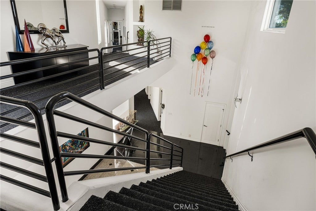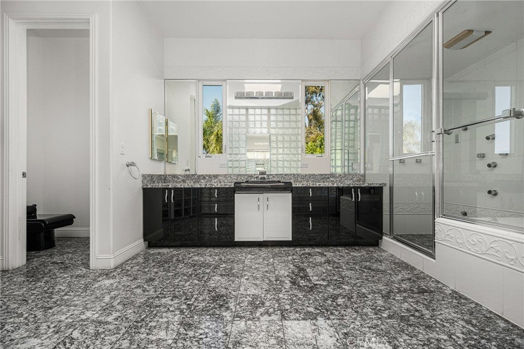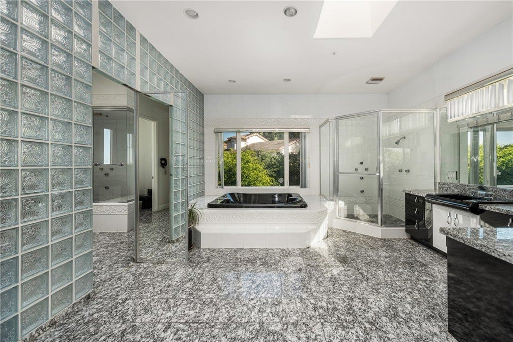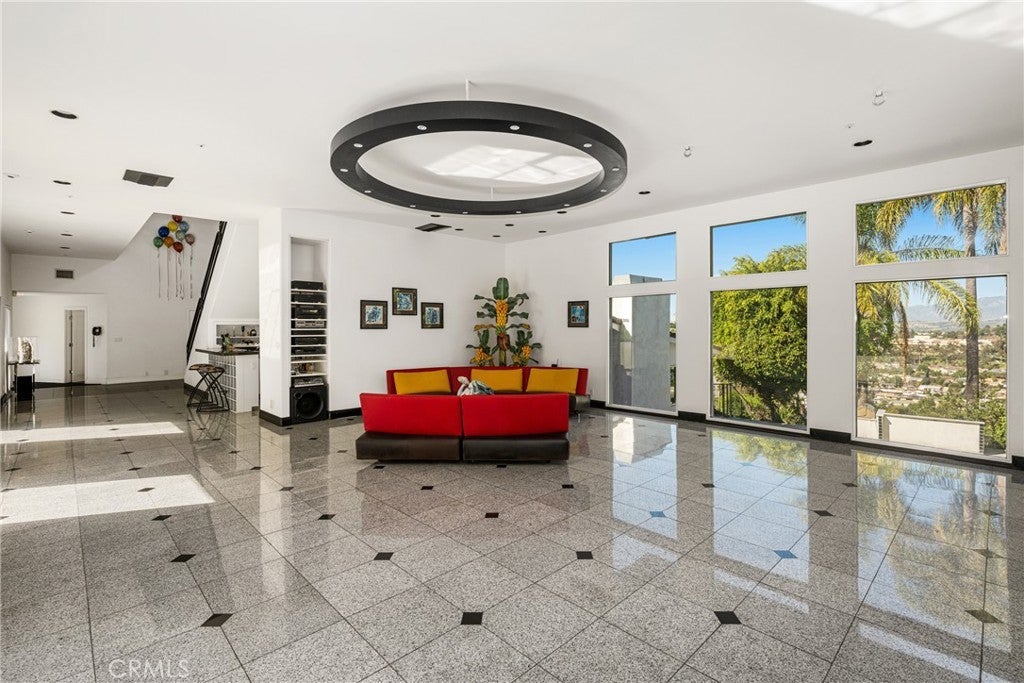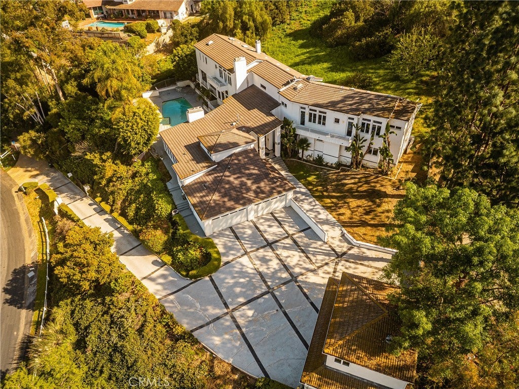 Welcome to 2820 Shadow Canyon Drive, an extraordinary hilltop estate within the prestigious 24-hour guard-gated community of The Country in Diamond Bar. Showcasing sweeping city lights and San Gabriel Mountain views, this private retreat offers elegance, scale, and breathtaking scenery from nearly every vantage point. Spanning 8,264 square feet on an expansive 1.69-acre lot, this custom residence embodies refined luxury living. A long private driveway leads to a stately entrance where soaring ceilings, abundant natural light, and dramatic floor-to-ceiling windows create an immediate sense of grandeur. The main family room frames spectacular vistas, seamlessly blending indoor and outdoor living. The home features eight spacious bedrooms, including two primary suites—one on each level. The upstairs primary suite is a true sanctuary with dual private balconies, two walk-in closets, dual spa-inspired bathrooms, and panoramic city and mountain views. Two additional junior suites upstairs provide comfort and privacy. On the main level, a second primary suite offers direct pool access, complemented by three additional bedrooms, including another junior suite. Designed for both grand-scale entertaining and everyday living, the residence offers formal living and dining rooms along with multiple family rooms that flow effortlessly to the outdoors. The chef’s kitchen is thoughtfully appointed with a large center island, white lacquer cabinetry, granite countertops, Sub-Zero refrigerator and freezer, Gaggenau fryer, charcoal grill and cooktop with downdraft vent, Dacor double ovens, NuTone built-in food center, breakfast nook, and a generous walk-in pantry. An expansive secondary family room opens directly to the resort-style backyard, creating a seamless indoor-outdoor experience. The grounds feature a sparkling pool and spa, built-in BBQ island, and inviting spaces ideal for entertaining or relaxing against a backdrop of stunning views. Additional highlights include a 7-car garage, Hunter Douglas Silhouette shades, LifeSource whole-house water system, and a 5-zone HVAC system. Residents of The Country enjoy access to a clubhouse, community center, scenic hiking trails, two clay tennis courts, and four pickleball courts. Ideally positioned near both Los Angeles and Orange Counties, this exceptional estate offers privacy, prestige, and unparalleled luxury living.