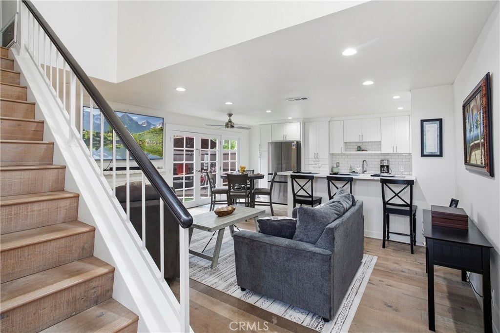 Coastal Living without the Beach Price! This single family home on a Cul De Sac in Harbor Lane right next to Dana Point. Close to DP Harbor, The Beaches, & Historic San Jaun Capistrano Downtown. Recently Remodeled & Upgraded throughout, w/ Recessed LED Lighting, Designer Wood Laminate Floor, New Paint, 3 Bedrooms, Full Bath En-suite upstairs & Full bath Downstairs. You enter to a large Open Family room with Fireplace, Dining Area & The Light filled Kitchen featuring Quartz Counters, under Cabinet Lighting, Stainless Steel Appliances, Soft Close Wood Cabinets and Drawers & Breakfast Peninsula. French Doors lead out to Large Private Patio w/ Pet Free Grass & Elevated seating, Fire pit, BBQ & Smoker Area, all gas piped. Upstairs are 3 Bedrooms with Ceiling fans & Lights, Closet organizers & Mirrored doors. 2 Car garage is completely finished with Lighting, Storage and an Epoxy coated Floor. Front Patio and entry feature Pet Proof Turf and Fire Pit. This Great Location provides comfort, backs to the Pool and Greenbelt for biking, walking, and easy access to freeways, shopping, beaches and dining.