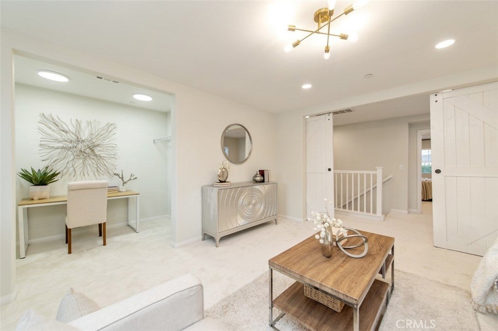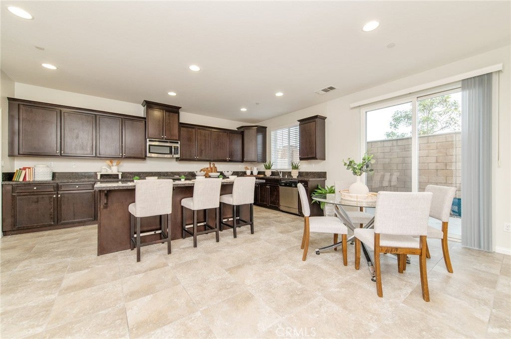 Welcome to this beautifully maintained home in the desirable Copper Sky community of Eastvale, built in 2015 and thoughtfully updated for today’s living. Offering approximately 2,634 square feet of living space, this two-story residence features 3 bedrooms and 3 bathrooms, including a convenient full bathroom on the main level. The kitchen features stainless steel appliances, granite countertops, and a center island that opens to the main living area, ideal for everyday living and entertaining. The formal dining room downstairs offers flexibility and can easily be used as a den, home office, or study area. Upstairs includes three spacious bedrooms along with an enclosed loft that can function as a bonus room, media space, playroom, or additional office. The primary suite features a spacious bathroom with dual vanities, a separate soaking tub and shower, a dedicated vanity area, and a walk-in closet. The home has been refreshed with brand new carpet, new interior paint, and updated lighting fixtures, including recessed lighting that enhances the bright and modern feel throughout.Additional highlights include a two-car attached garage with a private driveway. Located within walking distance to elementary, middle, and high schools in the highly regarded Corona-Norco Unified School District. Major shopping centers, dining, and daily conveniences are just a short 5-minute drive away.Residents enjoy access to community amenities including a clubhouse, pool, spa, barbecue areas, and playground.