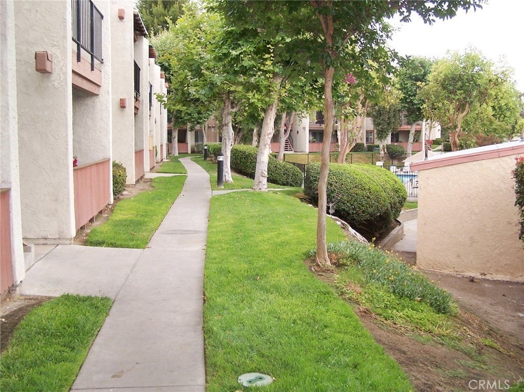 One level condominium on the second level that is in good shape and has been well maintained. Interior is freshly painted. Entry into Living Room with gas fireplace. Sliding doors open off this room to the outdoor patio deck. Dining Room is adjacent to the Living Room and has a ceiling fan as well. Kitchen has electric range, range hood, dishwasher, stainless sink and ample storage. Primary Bedroom has a closet with built-ins and ceiling fan, Primary Bathroom is a 3/4 Bathroom with easy access to walk-in shower. Second Bedroom also has a closet with built-ins and a ceiling fan. Second Bathroom is a full bathroom in the hallway just outside the bedroom. Flooring is laminate in the bedrooms, living room and dining room. Ceramic tile is in the bathrooms and kitchen. Storage closets are in the entry area, hallway and adjacent to the patio deck. Detached two car garage is across from the unit at ground level. It has plenty of storage space inside. The Fashion Heights complex includes a secure entry gate, inground pool & spa, coin laundry room that is secure and ample greenbelt. The outdoor areas are well maintained by the HOA. The units were all re-roofed a couple of years ago. Come schedule an appointment to see the condo at an affordable listed price!