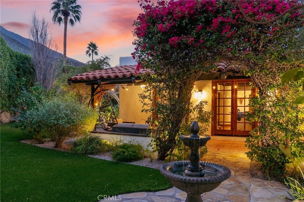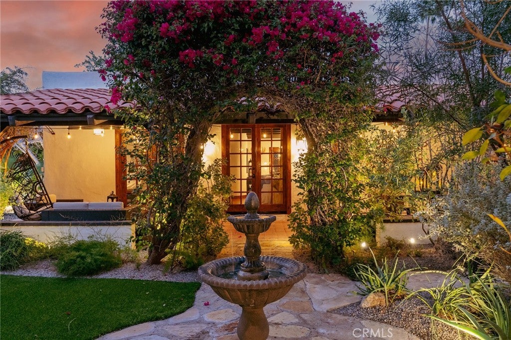 Tucked into the coveted Mesa neighborhood, this Spanish-style retreat offers privacy, presence, and timeless character. A bougainvillea framed archway and gated courtyard entry create a romantic sense of arrival while preserving the home’s quiet seclusion, just minutes from the energy of downtown. The main residence features 2 bedrooms and 2 baths, complemented by a detached poolside casita with its own bath, creating a 3 bedroom compound layout. An additional cabana offers flexibility as a fourth bedroom, studio, gym, or private office. French doors open to multiple patios, seamlessly connecting interior living spaces with the outdoors. Exposed wood beams, custom finishes, and carefully curated details reflect classic Spanish architecture with a refined, modern sensibility. The grounds are thoughtfully landscaped for privacy and ease, with multiple areas for entertaining and relaxation. The pool and surrounding outdoor living spaces are designed for effortless desert living, from quiet mornings to evening gatherings under open skies. A distinctive offering in one of Palm Springs’ most established neighborhoods, thoughtfully designed and exceptionally maintained.