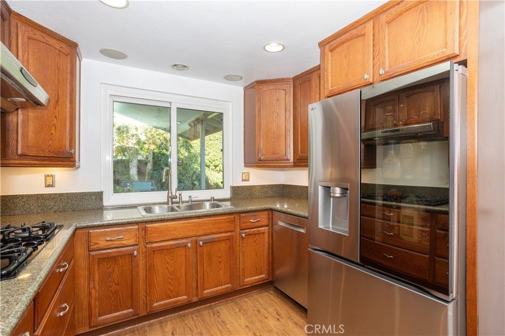 Welcome to this beautiful 5 Bedroom 2 bath house in the city of Cypress with award winning schools. Walk into a beautiful updated kitchen with granite counter tops and stainless steel appliances. Large pass through window to the patio and outside dining area underneath covered shade. Access to the garage and laundry from the kitchen. Beautiful living room with a cozy fireplace and plenty of natural light. Newer vinyl flooring throughout. Dual pane windows. Comes with 4 bedrooms and 1 bathroom on the west end of the home. Primary suite comes with a remodeled on-suite with tub/shower combination. Remodeled main bathroom across the hallway. Additional bonus room on the west end of the home is very large and has a big slider to the backyard. Newer HVAC with ducting installed in 2021. Great entertainment patio area with green space. Close to Lexington Park to the south. Veterans Park to the north less than a few minutes away. Large corner lot with attached two car garage with a new roll up door installed 2026 and a long driveway for additional parking.