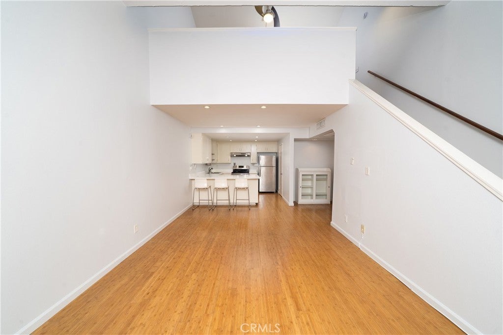 A must-see, move-in ready townhouse in the North Point community. Small complex in an excellent neighborhood of Fullerton. This unit features 1 bedroom and 1 bathroom with no one below or above, townhouse-style. Cathedral ceilings, recessed lighting, and bamboo flooring throughout. Spacious living room and a large room next to the kitchen that can be used for storage or as a walk-in pantry. Walk-in closet in the upstairs bedroom. Large front patio, perfect for entertaining or pets. Close to the pool and clubhouse. Walking distance to shopping, parks, and schools. HOA includes water, trash, clubhouse, and pool. Conveniently located near California State University, Fullerton.