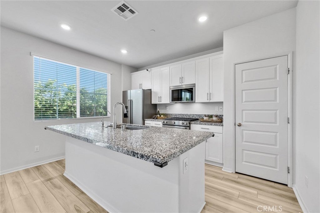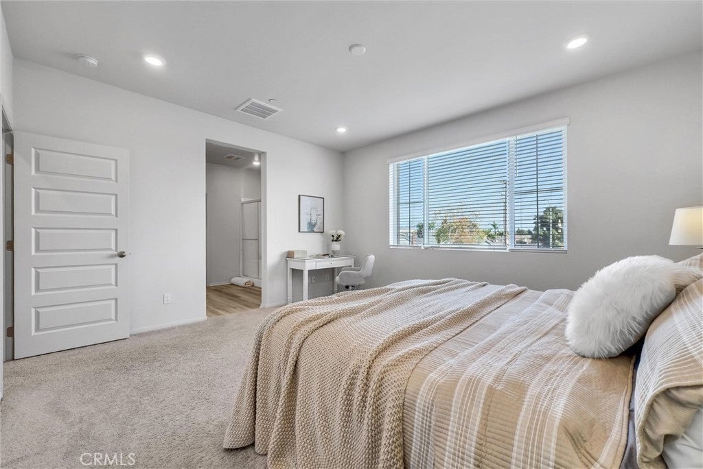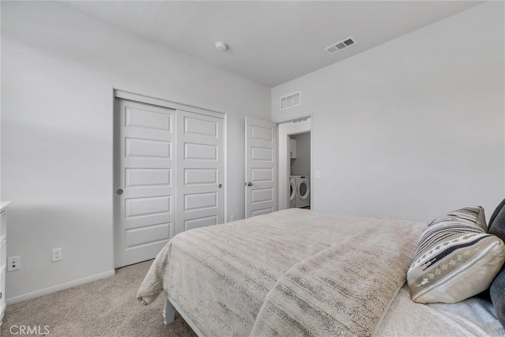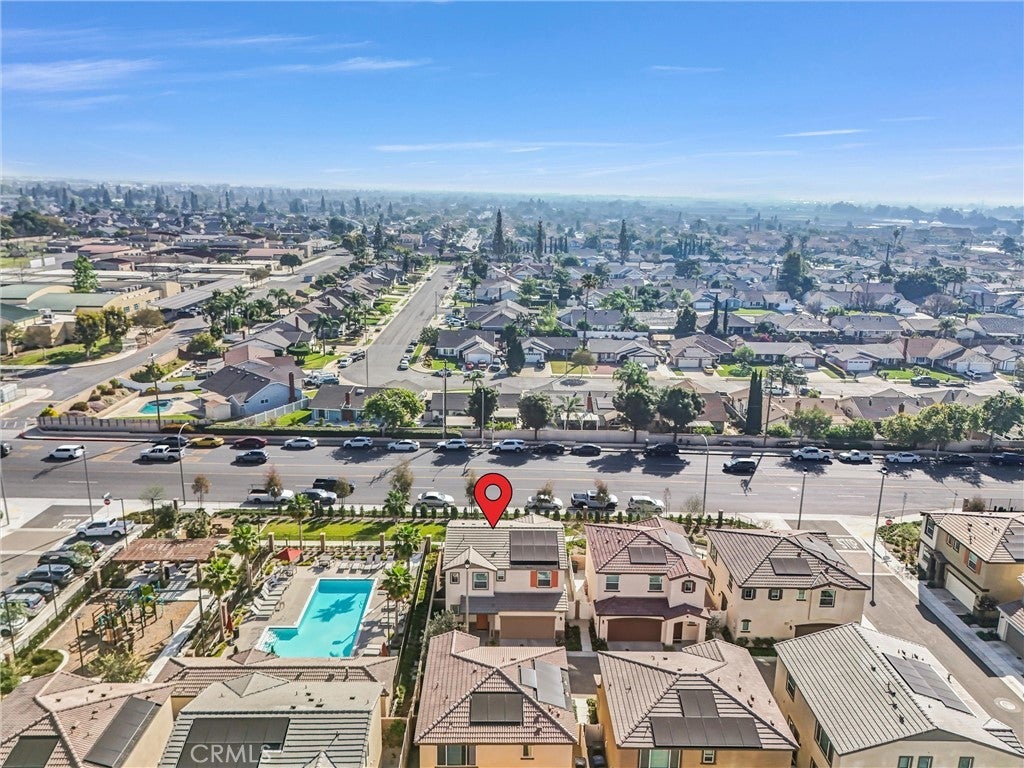 (LOW HOA Due, LOW Property Tax Approx. 1.1%, & NO Mello-Roos/CFD) Beautifully Newer Built in 2024, 3-bedroom, 2.5-bath home offering 1,684 sqft of bright & inviting living space. Located close to the community pool, and picnic area, this home combines comfort, convenience, and community. Enjoy a spacious two-bay garage with storage racks & owned solar panels for energy efficiency & also multispeed HVAC system, spray foam insulation, & high-performance air filtration. Inside, the home features fresh paint, chrome fixtures throughout, and an open floor plan ideal for modern living. The chef’s kitchen showcases a large island, countertops with a granite backsplash, plenty of cabinetry with pantry, and stainless-steel appliances including a gas range, dishwasher, and micro-hood. All bedrooms are located upstairs, including a primary suite with a walk-in closet and private walk-in closet. Bathrooms include high-efficiency toilets & dual sinks. Additional included amenities feature a refrigerator, washer, dryer, reverse-osmosis (RO) drinking system, and water softener ~ providing true move-in-ready convenience. Situated just minutes from major freeways (SR-60 and I-15), whether commuting to work, exploring the mountains, or heading to coast. (Lives like a SFR, property is zoned as the detached condo.)