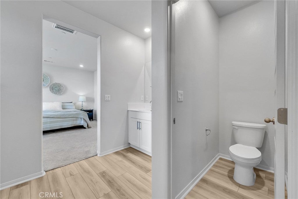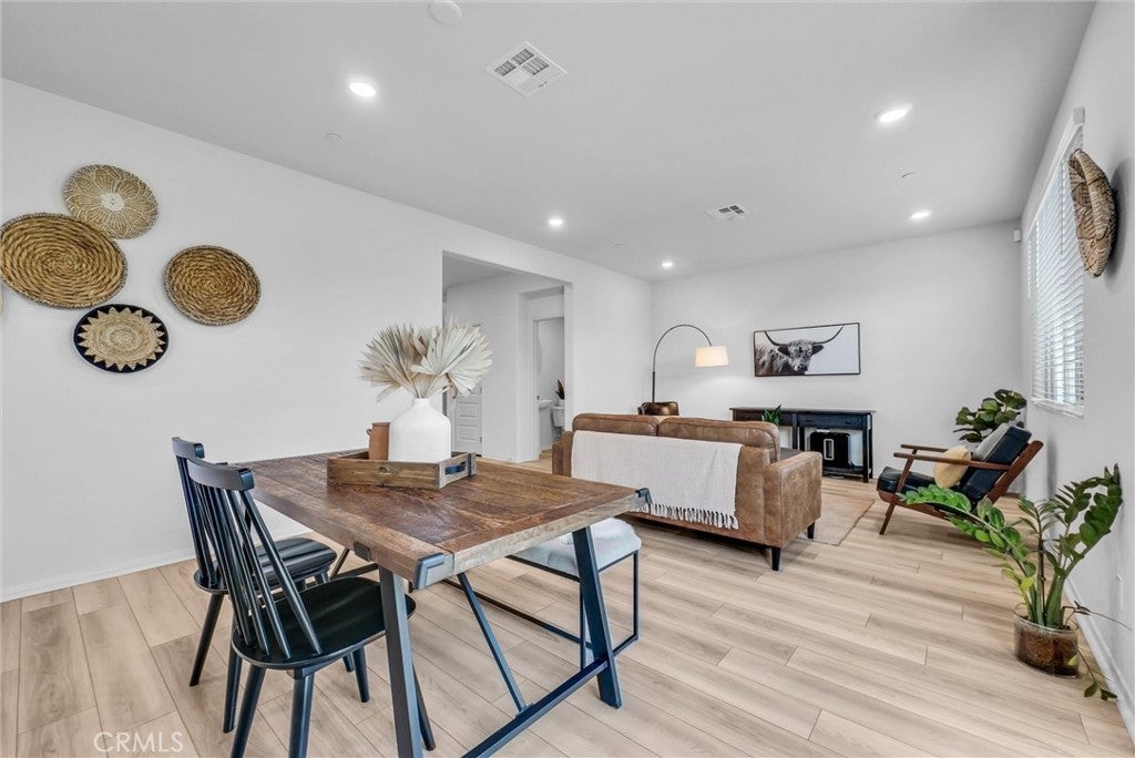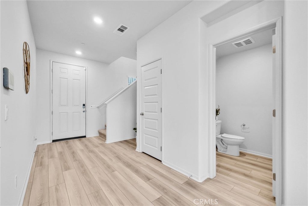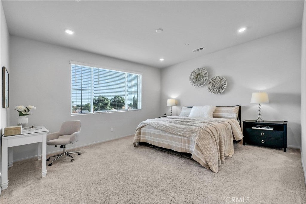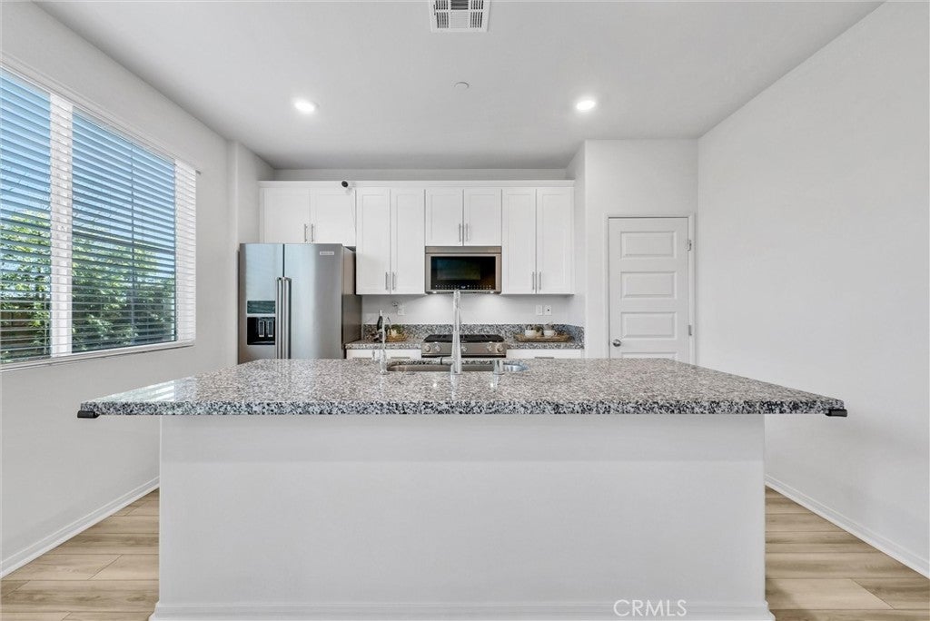 (LOW HOA Due, LOW Property Tax Approx. 1.1%, & NO Mello-Roos/CFD) Beautifully Newer Built in 2024, 3-bedroom, 2.5-bath home offering 1,684 sqft of bright & inviting living space. Located close to the community pool, and picnic area, this home combines comfort, convenience, and community. Enjoy a spacious two-bay garage with storage racks & owned solar panels for energy efficiency & also multispeed HVAC system, spray foam insulation, & high-performance air filtration. Inside, the home features fresh paint, chrome fixtures throughout, and an open floor plan ideal for modern living. The chef’s kitchen showcases a large island, countertops with a granite backsplash, plenty of cabinetry with pantry, and stainless-steel appliances including a gas range, dishwasher, and micro-hood. All bedrooms are located upstairs, including a primary suite with a walk-in closet and private walk-in closet. Bathrooms include high-efficiency toilets & dual sinks. Additional included amenities feature a refrigerator, washer, dryer, reverse-osmosis (RO) drinking system, and water softener ~ providing true move-in-ready convenience. Situated just minutes from major freeways (SR-60 and I-15), whether commuting to work, exploring the mountains, or heading to coast. (Lives like a SFR, property is zoned as the detached condo.)