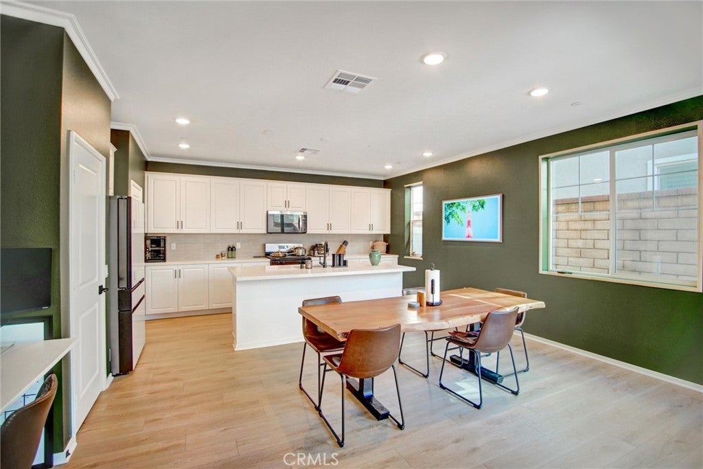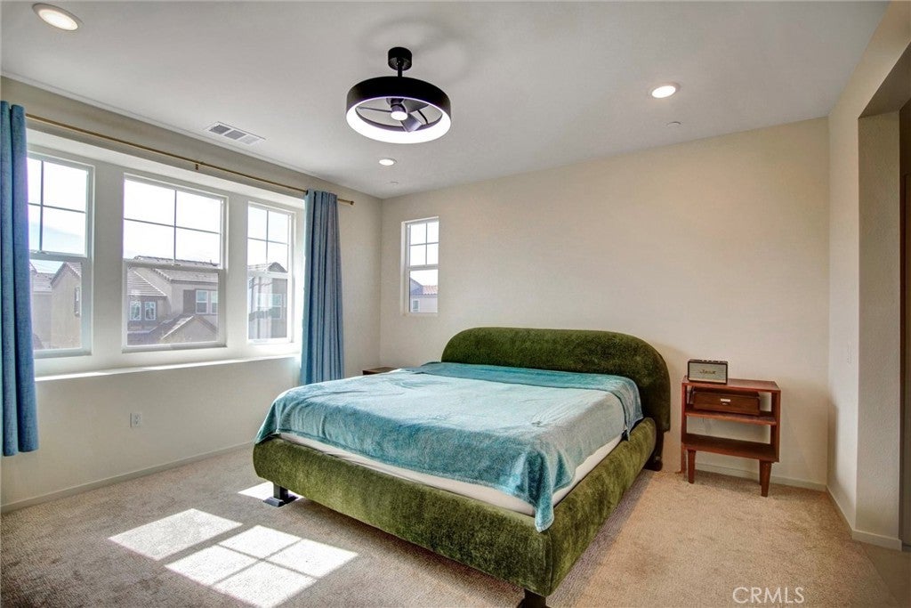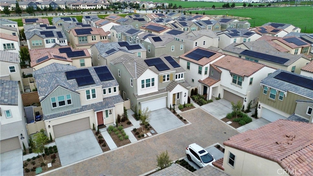Pristine 2025 Construction with PAID-OFF SOLAR! Skip the builder wait with this turn-key, 1,889 sqft detached residence in the Dwell community of New Haven. Lived in for only a few months, this modern home features 3 bedrooms, 3 bathrooms, and a versatile upstairs loft. The open-concept main floor centers around a gourmet kitchen with premium countertops, premium cabinetry, and a large social island. The primary suite offers a private retreat with a spacious walk-in closet and a contemporary en-suite bathroom featuring a large walk-in shower. Significant value includes a fully paid-off solar system (no lease) and smart home technology. Enjoy a private rear yard with brand new landscaping and access to premier New Haven amenities: resort-style pools, Sundance Park, "Paws Park," and the vibrant Rodeo X Public Market. Ideally located near the 10, 15, and 60 freeways for an easy commute.