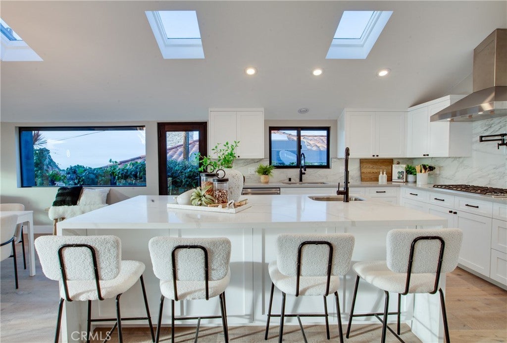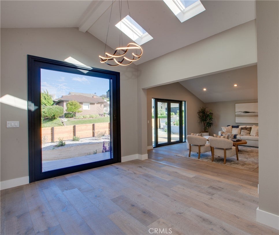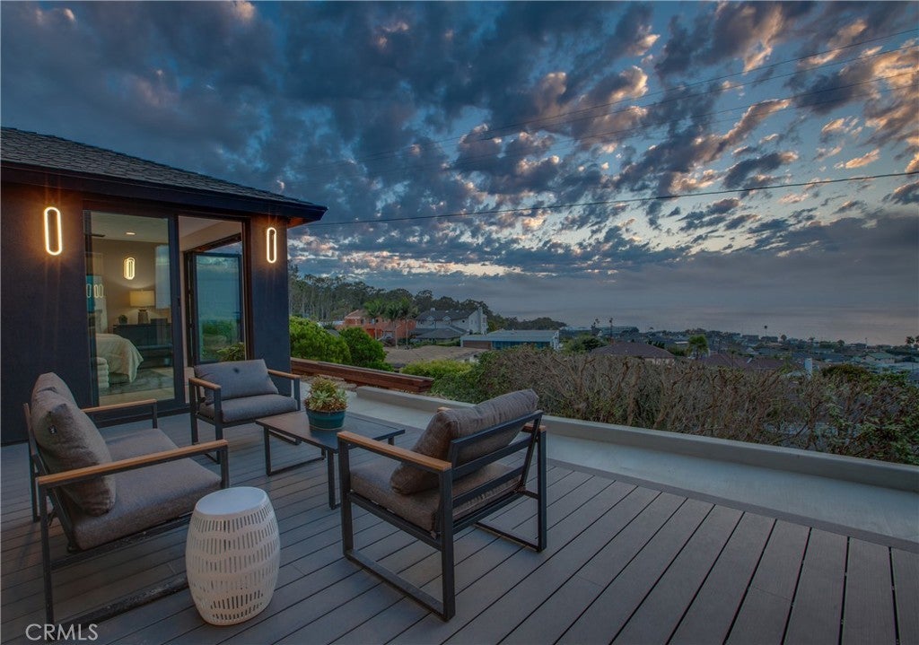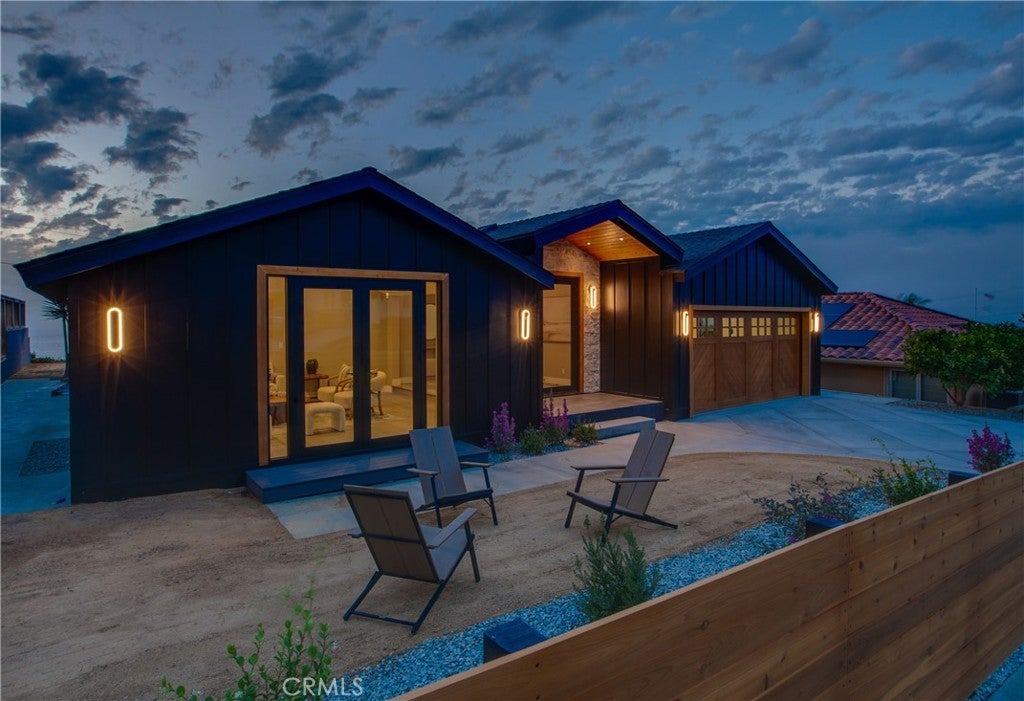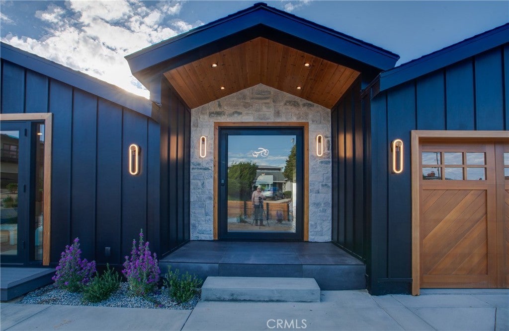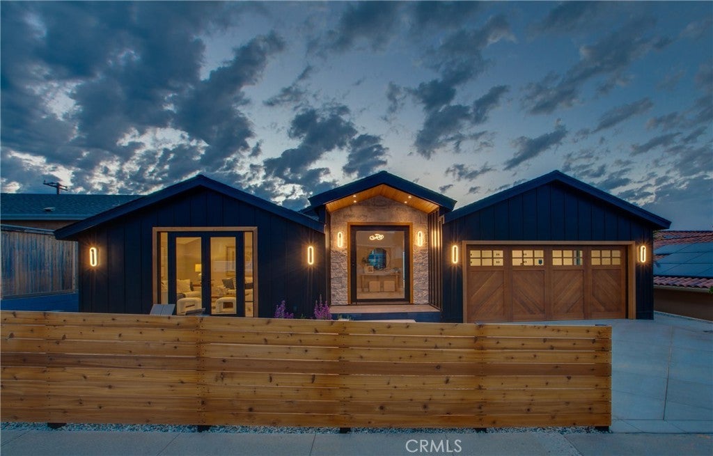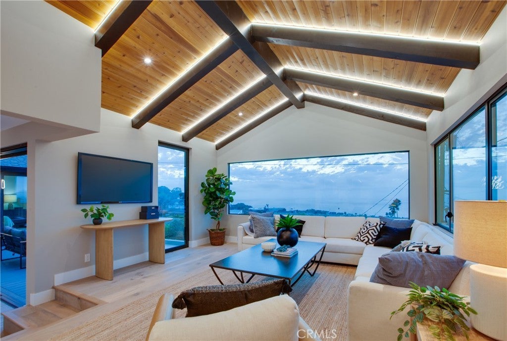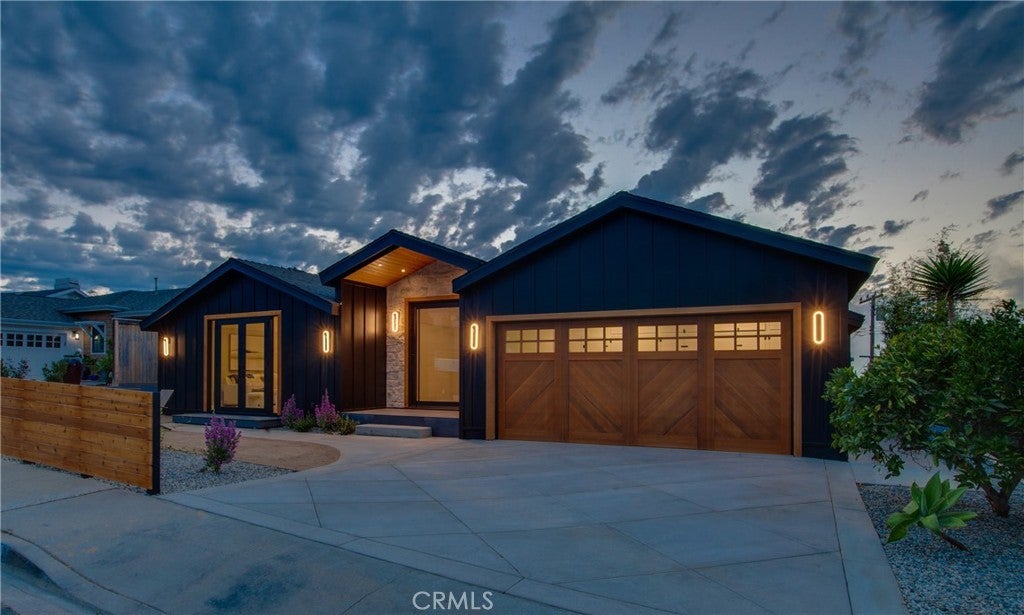 A Contemporary coastal ranch with modern farmhouse elements. The dark vertical siding paired with warm wood garage doors and trim provides a strong contrast and upscale curb appeal; Linear sconces add modernity and make the exterior glow at dusk, emphasizing architectural lines. A new horizontal cedar fence frames the lot, blending with the wood tones of the home. Minimalist landscaping (gravel, succulents, and low-water plants) suits a coastal climate and low-maintenance lifestyle. This coastal luxury retreat in the Hollywood Riviera has been newly reimagined to blend modern design with timeless finishes, offering three bedrooms and three bathrooms across an open floor plan filled with natural light. Sweeping ocean and sunset views define the living experience, with expansive picture windows and sliding glass doors connecting every major space to the outdoors. The rear living room is the architectural highlight, featuring vaulted ceilings with exposed wood beams and custom integrated LED lighting that accentuates the dramatic wood-plank detail overhead. A seamless flow leads into the dining area and designer kitchen, where quartz counters, premium stainless steel appliances, custom cabinetry, and an oversized island create a stylish and functional space for both entertaining and everyday living. The private master suite opens directly to the deck and includes a generous walk-in closet and a spa-style bath with dual vanities, modern tilework, and a walk-in shower. Two additional bedrooms and two full baths provide flexibility for guests, family, or office use. Outdoor living is equally impressive, with multiple view decks oriented toward the Pacific, blending indoor comfort with breezy coastal elegance. The contemporary exterior showcases stone and wood accents, complemented by drought-tolerant landscaping and a two-car garage with custom doors. Located just moments from Riviera Village, sandy beaches, dining, and award-winning schools, this residence embodies the best of Southern California coastal living. Due to the numerous inquiries during the development of this home, it is not expected to stay on the market long. Hurry, this one won't last.