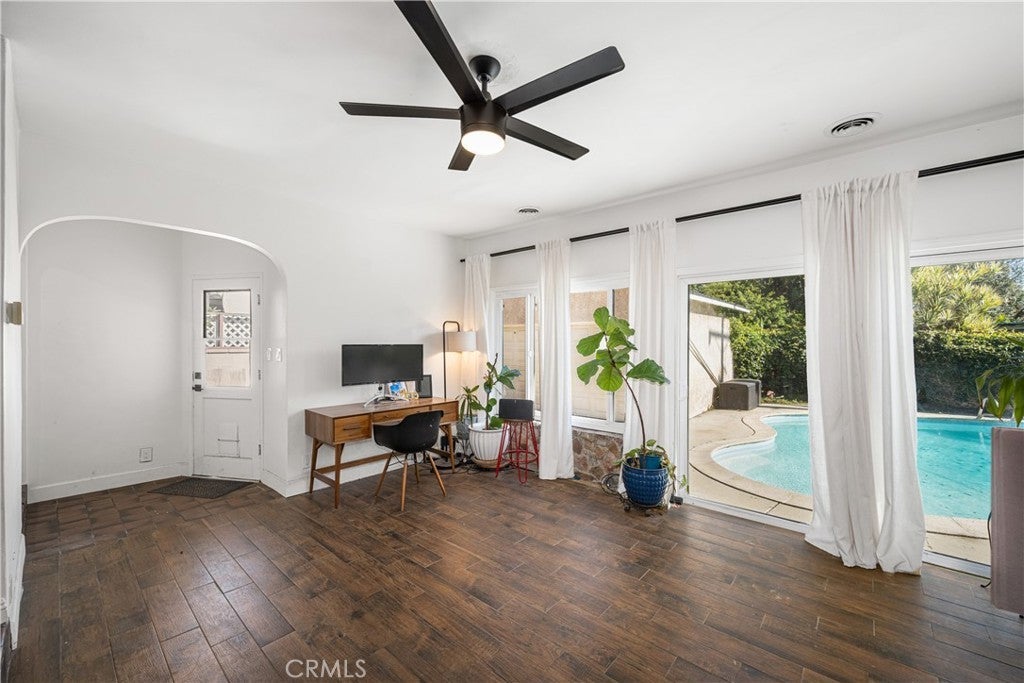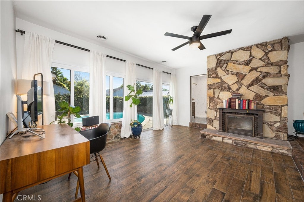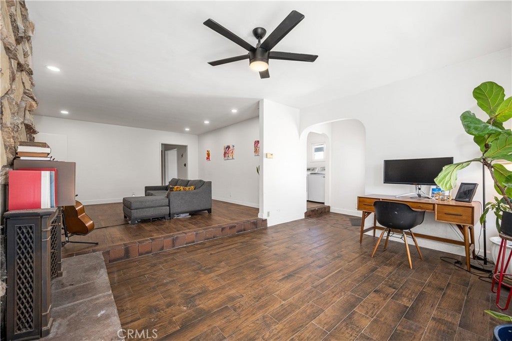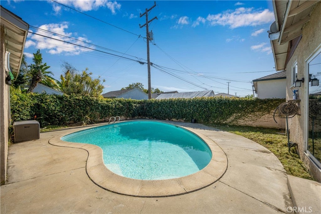 Welcome to this 3-bedroom, 2-bath home ideally located in the highly sought after Carson Park neighborhood of Lakewood, offering great potential and opportunity. With a spacious and functional layout, the home blends classic charm with thoughtful updates and room to make it your own. Step inside to a large, light filled living room featuring recessed lighting, a beautiful stone fireplace, and laminate flooring with original oak hardwood floors underneath. A separate family room with expansive windows and a sliding glass door opens to the backyard, creating a seamless indoor-outdoor flow perfect for everyday living and entertaining. The kitchen opens to a dedicated dining area and features an eat-up bar, double oven, gas range with vent hood, oak cabinetry, recessed lighting, and ample counter space. A separate laundry room with additional cabinetry and pantry storage adds convenience and functionality. The spacious primary suite includes floor to ceiling mirrored closet doors and a fully remodeled en-suite bathroom showcasing a large walk-in shower with porcelain tile, stone composite shower pan, cementitious tile flooring, custom vanity, and stylish gold accent fixtures. Additional highlights include dual-pane windows, a composition 50-year roof, central heating, ceiling fans in the bedrooms, and a long driveway offering ample parking, including space for RV or boat parking and a detached 2-car garage. Step outside to a private backyard with a pool—just the right space to relax, unwind, and enjoy SoCal living. Ideally located near award-winning Cleveland Elementary, McBride High School, Heartwell Golf Course, the San Gabriel River Bike Trail leading to Seal Beach, and a variety of shopping and dining options.