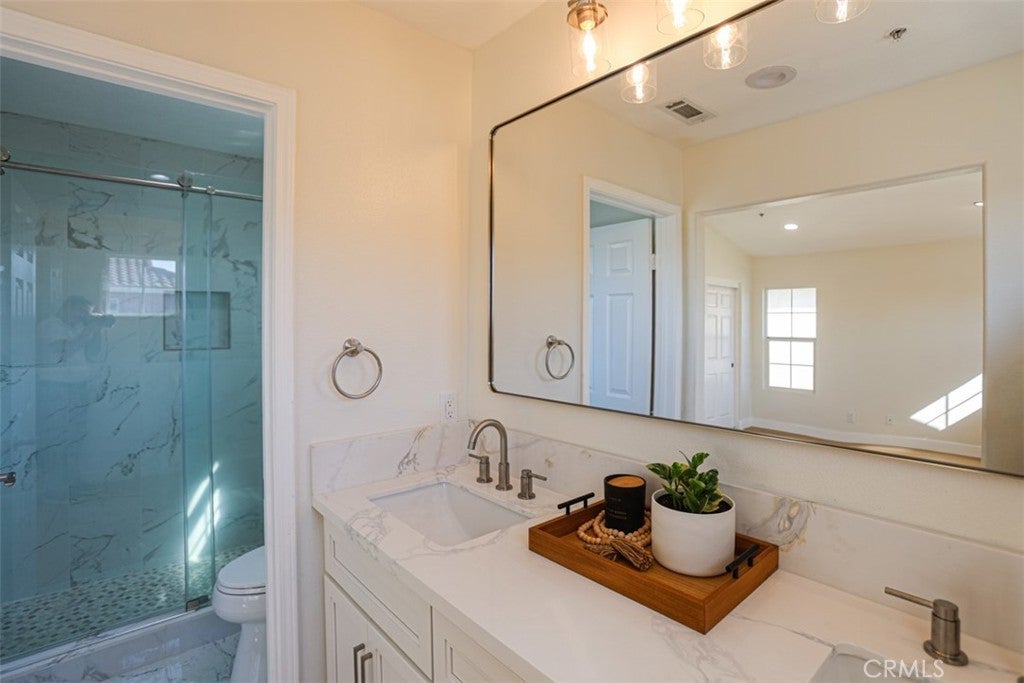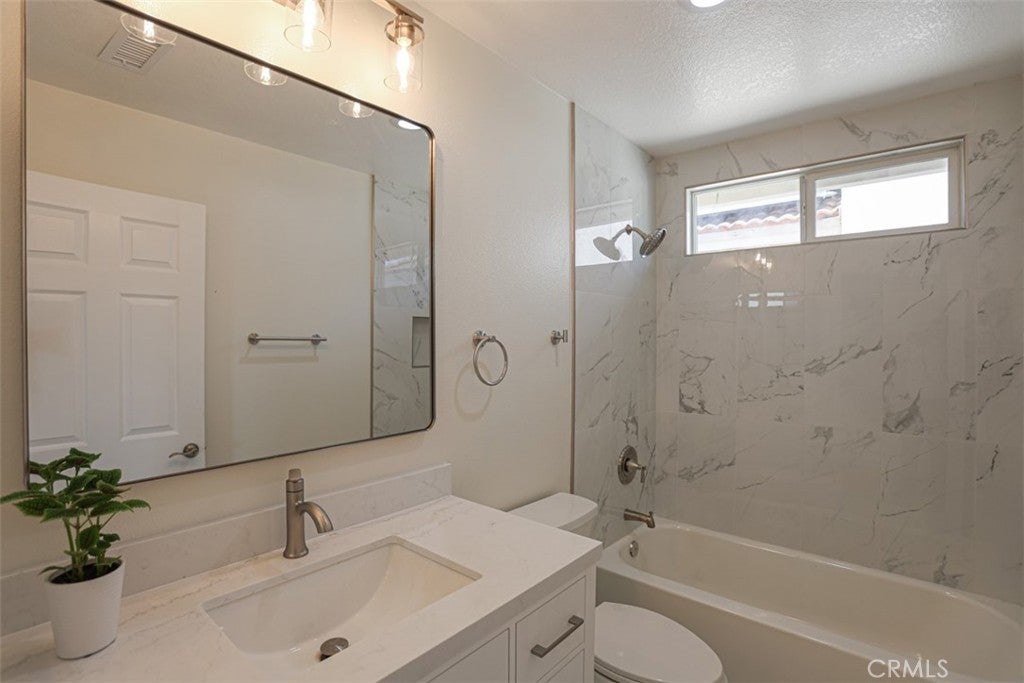 FULLY REMODELED Inside and Out – Move-In Ready! This beautifully updated home features 4 spacious bedrooms and 2.5 modern bathrooms, offering comfort and flexibility for families of all sizes. The interior showcases brand-new luxury vinyl wood flooring throughout, recessed lighting throughout, complemented by sleek white cabinetry and elegant quartz countertops in the kitchen. A full suite of brand new Samsung appliances including a French-door refrigerator, 5-burner gas range, and matching dishwasher, making the kitchen both stylish and functional. Each bathroom has been thoughtfully upgraded with tile flooring, new Kohler toilets, and contemporary vanities. The primary bathroom includes a newly installed walk-in shower, while the secondary full bath features a new tub and beautifully tiled surround. The exterior has been freshly painted in designer-selected colors, adding to the home’s curb appeal. The large backyard is perfect for entertaining, and the low HOA of just $55/month adds great value. Unbeatable price for a turnkey home- Don't miss out!