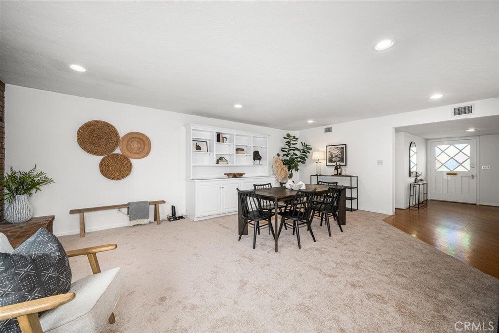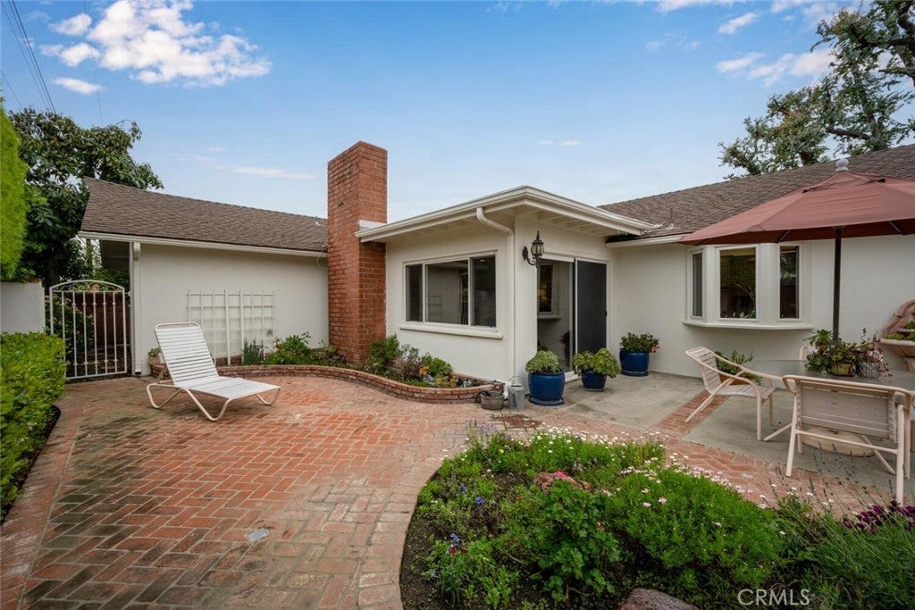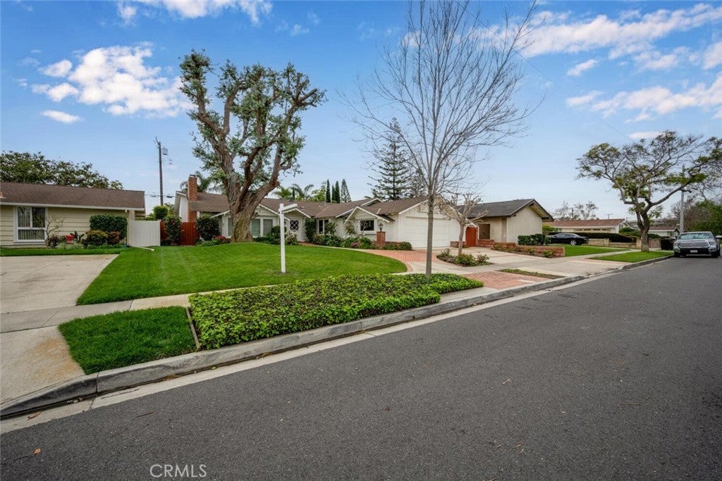 Welcome to this well-maintained and expanded Plymouth Model located in the desirable ROSSMOOR neighborhood! Home shows light, bright, clean and move-in ready! Beautiful curb appeal with landscaped yards, timeless brick details, and located on a tree-lined interior street just steps from Hopkinson Elementary. Designed for both everyday living and entertaining, this 4-bedroom, 3-bath layout features an open floor plan with 2 fireplaces, and a seamless flow between formal and casual living and dining spaces. Built-ins provide added functionality, while the all-white kitchen offers plenty of counter space and storage, bar seating, and a charming breakfast nook. The primary bedroom with an enlarged ensuite bath features dual vanities, a walk-in shower, and closet with organizers. The guest bedrooms are generously sized, complemented by a guest bath with dual sinks and a spacious indoor laundry room. Recent updates include fresh interior paint and new carpeting. Additional amenities: A/C, dual-pane vinyl windows, recessed lighting, upgraded electrical panel, wood shutters, mirrored closet doors and more! Out back, enjoy a private patio setting with mature trees, brick planters, and block wall/wood panel fencing -- with no direct neighbors behind for added privacy. Finished garage with custom built-in cabinets & attic storage. Located near top-rated Los Alamitos schools, parks, shopping, dining and just minutes from the beach, this special home offers comfort, space, and endless potential to make it your own!