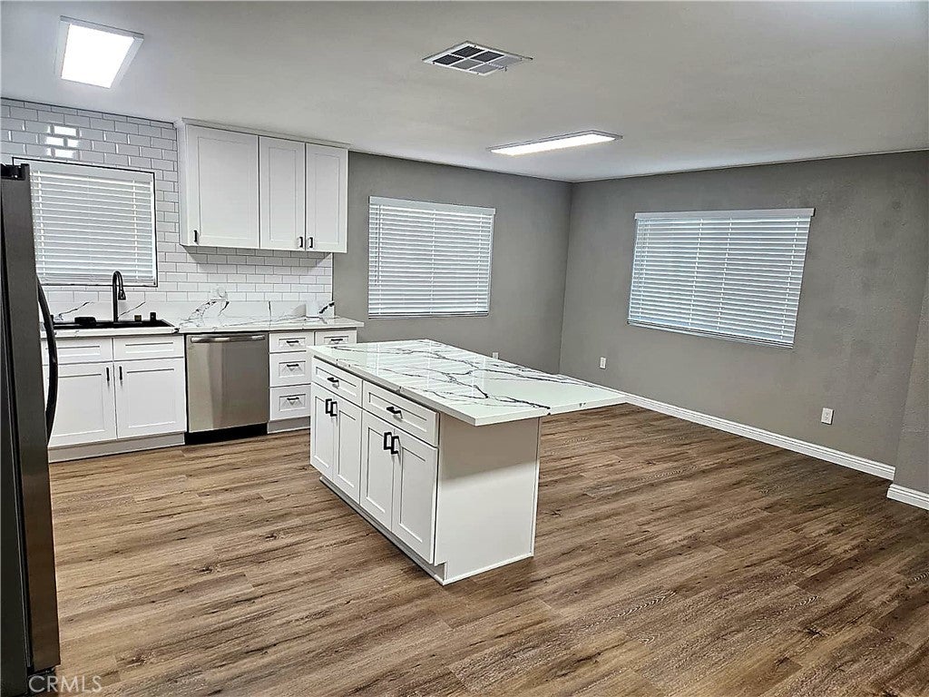 Welcome to this thoughtfully remodeled 3-bedroom, 2-bath home offering modern design, clean lines, and comfortable living throughout. From the moment you step inside, you’ll appreciate the seamless luxury vinyl plank flooring that flows throughout the entire home, creating a warm and cohesive feel. Recessed lighting enhances the bright, open atmosphere, while updated finishes give the home a fresh, contemporary look. The stunning kitchen serves as the heart of the home, featuring elegant quartz countertops, brand-new stainless steel appliances including refrigerator, stove/range, and dishwasher, and sleek cabinetry that combines style and function. Whether preparing everyday meals or hosting guests, this space is designed to impress. The spacious primary suite offers a peaceful retreat complete with a walk-in closet and a beautifully updated private bathroom. Both bathrooms have been upgraded with quartz vanity countertops and modern LED mirror lighting, adding a sophisticated, spa-inspired touch. Step outside to a private backyard framed by a beautiful, classy wood fence that adds warmth, charm, and enhanced privacy. The outdoor space offers room to relax, entertain, or customize to your lifestyle. Every detail has been carefully selected to create a home that feels both stylish and comfortable. Completely move-in ready, this property offers the perfect blend of modern upgrades and everyday functionality. A true turnkey opportunity ready for its next owner to enjoy.