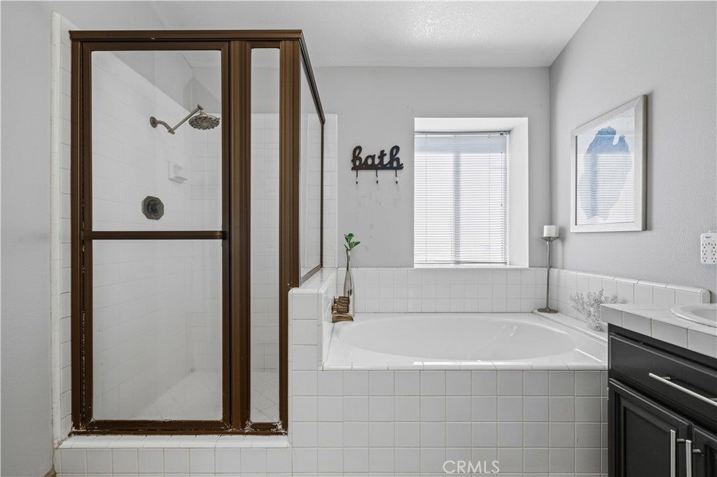 A home where everyday living feels easy with perfect balance of comfort, style, and lifestyle convenience. This is the kind of home that quietly stands apart. Originally the model when the neighborhood was first introduced, it was built to showcase space, light, and thoughtful design - and it still does. The living room opens up with a dramatic two-story ceiling that makes the entire home feel bright and expansive. The dining room overlooks the backyard, while the kitchen’s large bay window brings in natural light and gives you a clear view of the yard. Just off the kitchen, the family room with a gas-burning fireplace offers a warm, comfortable place to gather. A downstairs powder room and separate laundry room add everyday function without sacrificing flow. Upstairs, the hallway looks down over the living room below, creating an open feel you don’t often find. The primary bedroom features vaulted ceilings and a large mirrored wardrobe closet, along with a spacious primary bath that includes a dual-sink vanity, separate soaking tub, and separate shower. Three additional bedrooms, each with wardrobe closets, and a full hallway bathroom complete the second level. Outside, the backyard feels like a private retreat. A resort-style spa, clean hardscaping, and a generous grass area give you room to relax, entertain, or simply enjoy the space. With a two-car garage and no HOA, this home offers comfort, character, and long-term value in one complete package.