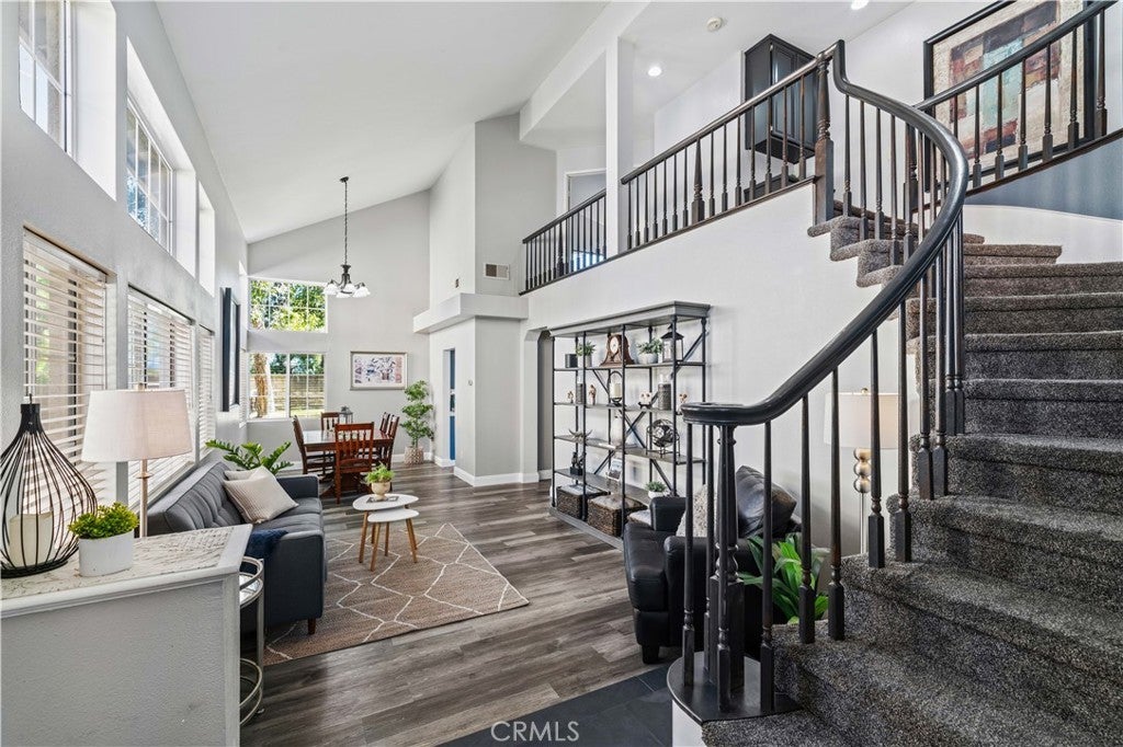 • Interior FeaturesBreakfast Bar, Breakfast Area, Ceiling Fan(s), Cathedral Ceiling(s), Separate/Formal Dining Room, High Ceilings, Open Floorplan, Recessed Lighting, All Bedrooms Up, Primary Suite, Two Story Ceilings