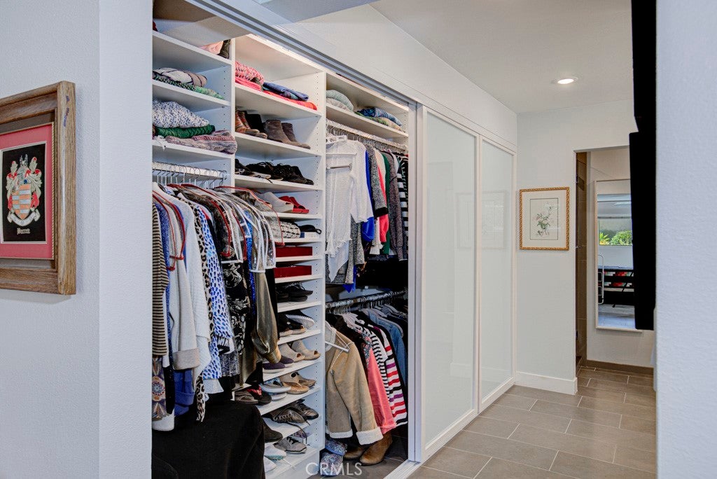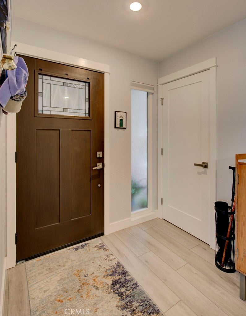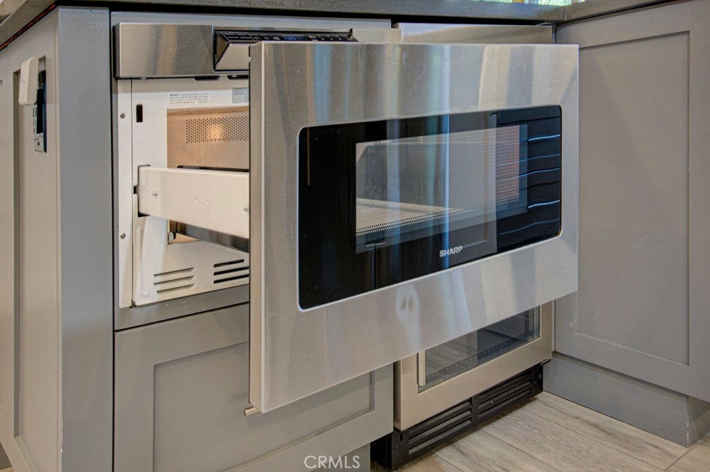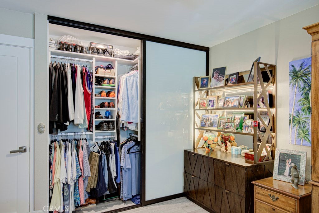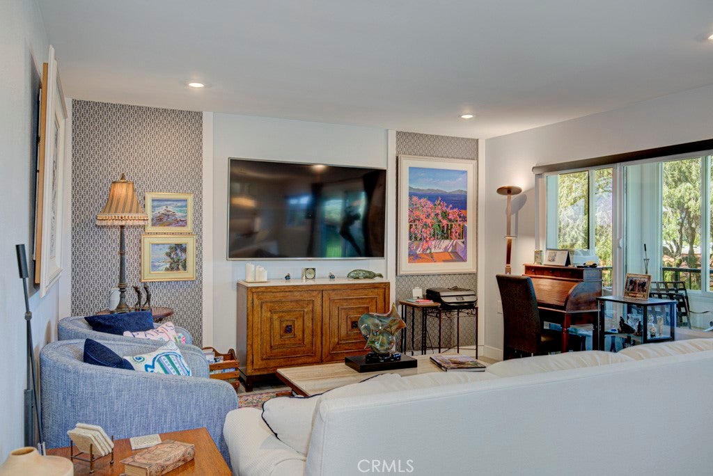 GREAT NEW PRICE! Exquisitely remodeled La Brisa residence in the highly sought-after 55+ community of Laguna Woods Village. This thoughtfully expanded home blends refined design, modern efficiency, and exceptional craftsmanship throughout. Step inside to soaring smooth ceilings raised to 8 feet, elegant recessed LED lighting with dimmers, and premium Cortec luxury vinyl flooring. The balcony sunroom has been largely enclosed to create additional interior living space, seamlessly enhancing the home’s open feel, while a dedicated outdoor portion remains—perfect for BBQs and relaxing amid tranquil tree-lined and distant mountain views. The designer kitchen is a true centerpiece, showcasing shaker cabinetry, quartz countertops, & a generous island with built-in microwave & wine refrigerator. High-end appliances include a Bosch dishwasher, induction range with exterior-vented chimney hood, and a Samsung four-door refrigerator featuring two convertible lower compartments that function as either refrigerator or freezer for ultimate flexibility. The dining area is enhanced by a custom built-in wall unit with accent lighting and abundant storage. Comfort and efficiency are paramount with dual-pane windows and slider, plus three Daikin split HVAC systems providing whisper-quiet climate control. Both bedrooms feature ceiling fans with remotes and custom closet doors, while the bedroom closets & spacious laundry closet are beautifully appointed with Classy Closet organizers for elevated functionality. Spa-inspired bathrooms offer shaker vanities, quartz countertops, tiled flooring, and custom-tiled showers with frameless glass enclosures. Additional highlights include a stacked in-home laundry area with storage, two mounted TVs wired for cable, and a newly upgraded electrical panel. Ideally situated in the desirable Gates 7–10 area with wide streets and a prime location. Residents enjoy world-class amenities including 5 swimming pools, 7 clubhouses, 3 fitness centers, two golf courses (27-hole championship and 9-hole par-3), over 250 clubs, performing arts theater, tennis and pickleball courts, lawn bowling, equestrian trails, fare-free transportation, & 24-hour security. All just minutes from Laguna Beach, premier shopping, fine dining, medical facilities, and easy access to the 5, 405 & 73 Freeways. A rare opportunity to own a turnkey, design-forward home in one of Southern California’s most prestigious active adult communities.