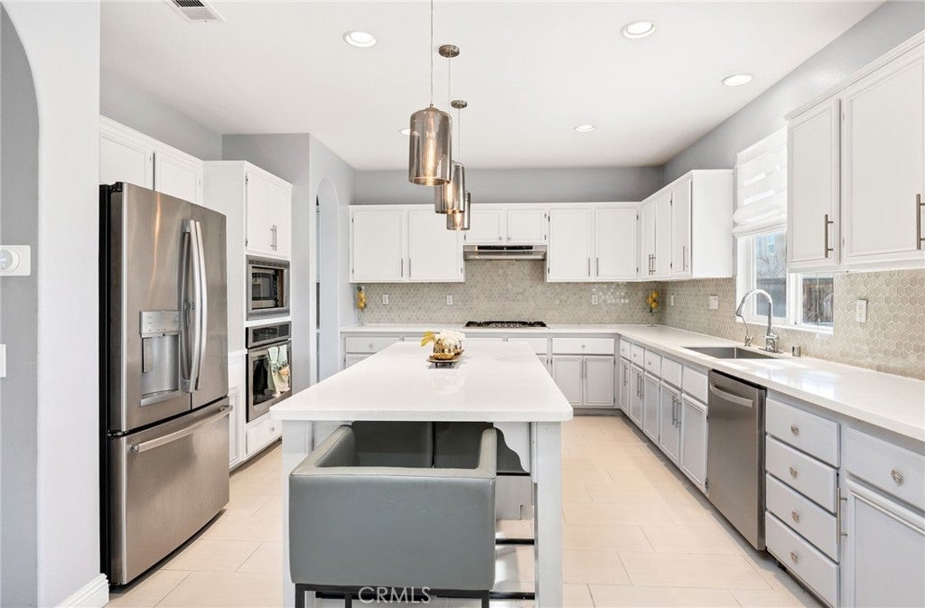 Step inside and prepare to be amazed! Completely turn-key and tastefully upgraded, this home truly shows like a model — it’s not like the rest. Come see it in person… you won’t believe how gorgeous it is. Located at 14603 Newburgh Rd, this beautifully maintained residence offers approximately 2,841 sq ft of living space with 4 bedrooms, 3 bathrooms, and a versatile upstairs loft, all situated on a generous 7,840 sq ft lot with a desirable 3-car garage and low $25/month HOA. Built in 2004, it combines architectural character with modern comfort and thoughtful upgrades throughout. Inside, you’ll find new interior and exterior paint, elegant crown molding and baseboards, upgraded tile flooring, and waterproof laminate throughout the main living areas. Soaring ceilings, dramatic archways, and abundant natural light create a grand yet welcoming atmosphere. The kitchen is absolutely stunning — completely remodeled and designed to impress. Featuring custom cabinetry, sleek quartz countertops, a modern tile backsplash, stainless steel appliances, and an oversized island with ample seating, it’s perfect for everyday living and entertaining. Upstairs includes three generously sized bedrooms plus a spacious loft ideal for a home office, media room, or playroom. The primary suite offers dual vanities, a soaking tub, and separate shower. Step outside to your private backyard retreat featuring an aluminum patio cover with ceiling fans and recessed lighting, a gazebo lounge area, fire pit seating, and lush grass — perfect for year-round gatherings. Leased solar panels provide energy efficiency and long-term savings. Ideally located near shopping centers, restaurants, hospitals, parks, and within walking distance to La Jolla Elementary School and Celebration Park. This home truly stands out — don’t miss it. Buyer to verify all information including bedroom count, square footage, permits, and property details to their satisfaction. Showings begin March 1.