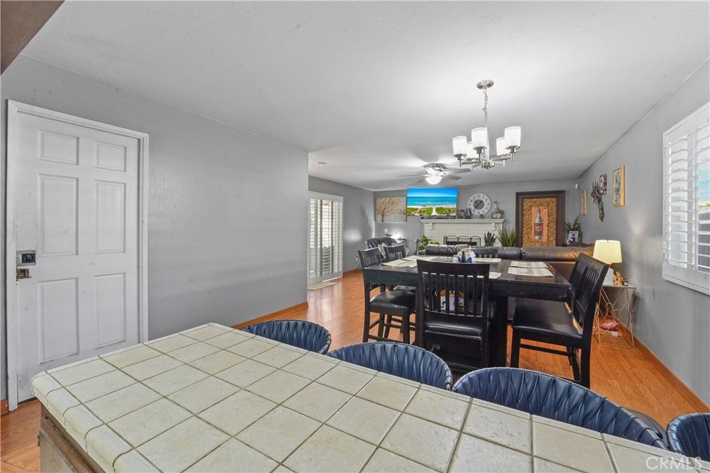 Welcome to this spacious and home, offering comfort, functionality, and room to grow. This well designed 3 bedroom, 2 bathroom residence also features a generous bonus room that can easily serve as a fourth bedroom, home office, den, or flex space to fit your lifestyle. Whether you are working from home, hosting guests, or simply need extra room, this layout gives you options. Step inside to a large living room centered around a cozy fireplace, creating the perfect setting for relaxing evenings or gathering with friends and family. The expansive kitchen is a standout feature, offering abundant cabinet storage and ample countertop space ideal for cooking, entertaining, and everyday living. The private primary suite includes its own bathroom, providing a comfortable retreat at the end of the day. Throughout the home you will find ceiling fans in every room, central air conditioning and heating, dual pane windows, and classic wooden shutters that add both charm and energy efficiency. Outside, the backyard is designed for enjoyment. Take a dip in the sparkling pool, unwind under the covered patio, or let pets roam freely in the dedicated dog run area. The oversized driveway and attached 2 car garage provide plenty of parking and storage space. Located in desirable East Hemet, this home combines space, flexibility, and outdoor living in one complete package. If you are looking for a property that offers both comfort and potential, this is one you will not want to miss.