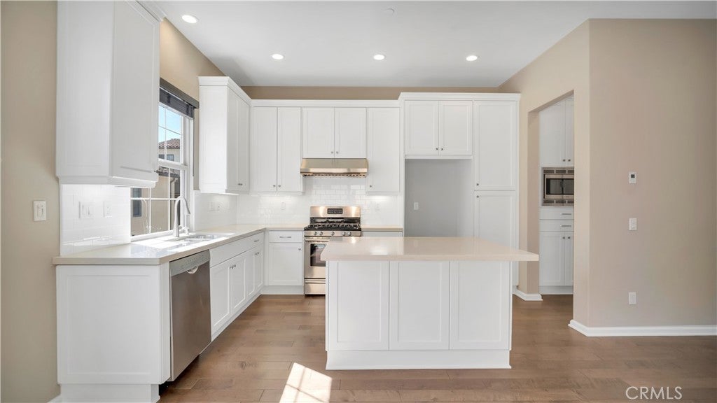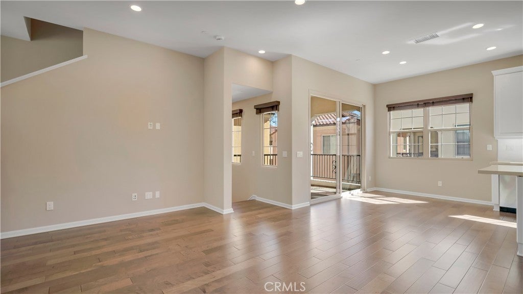 DETACHED HOME ON A PREMIUM LOT tucked quietly within Luna at Portola Springs, with over 1,500 sqft of living space offers the kind of privacy that is hard to find. With no neighbors directly in front of the unit, your view opens to lush greenery instead of another front door. It feels calm, private, and intentionally positioned. As you step inside, you immediately notice the warmth of hardwood floors at the entry. The main level features a junior suite with its own ensuite bath, ideal for guests, extended family, or even a quiet home office. It provides separation while still feeling connected to the rest of the home. Upstairs, the second floor becomes the heart of daily living. Designed with a true great room layout, the living, dining, and kitchen spaces flow seamlessly together. Natural light fills the room, and from the living area you look out to mature landscaping rather than neighboring windows. It is bright, open, and easy to live in. The kitchen is timeless and functional with white shaker cabinetry, quartz countertops, and a generous center island with counter seating. Under cabinet lighting adds a soft glow in the evenings, and upgraded Bosch appliances elevate everyday cooking. Just off the dining area, a private patio creates the perfect extension of the space, whether it is morning coffee or winding down at the end of the day. On the third level, you will find two additional ensuite bedrooms, including a spacious primary suite with a walk in closet and peaceful views of greenery. It feels tucked away and elevated, like your own private retreat. The additional guest suite on this level is naturally well lit with mountain views and generously sized, offering flexibility for family or visitors. Living in Portola Springs means embracing a true resort style lifestyle. Residents enjoy 19+ parks, 12 pools including Olympic and Jr Olympic pools, 4 clubhouses, sport courts, tennis and pickleball courts, scenic trails, tot lots, and BBQ and picnic areas. It is a neighborhood designed around connection and the outdoors. Families are drawn to the highly regarded Irvine Unified School District, and the location places you just minutes from Woodbury Town Center, Orange County Great Park, and Irvine Spectrum Center for dining, shopping, and entertainment. 142 Firefly is not just another Irvine home. It is privacy, thoughtful design, and the best of Irvine living, all in one beautifully positioned address.