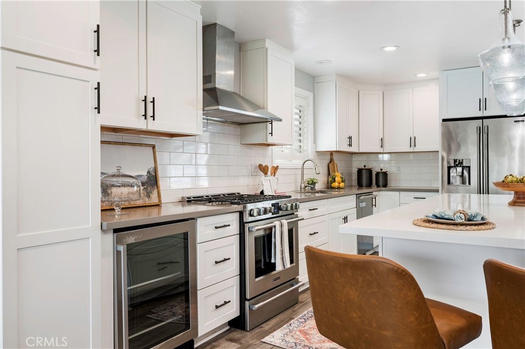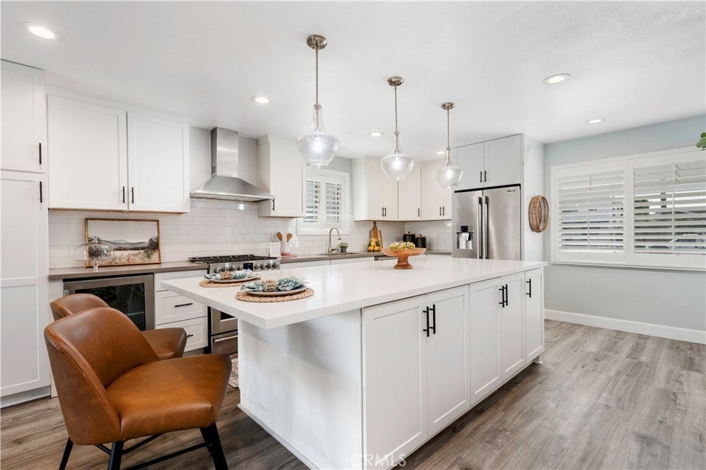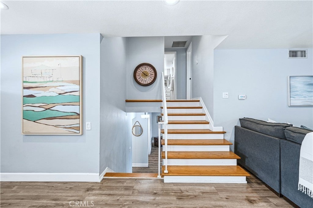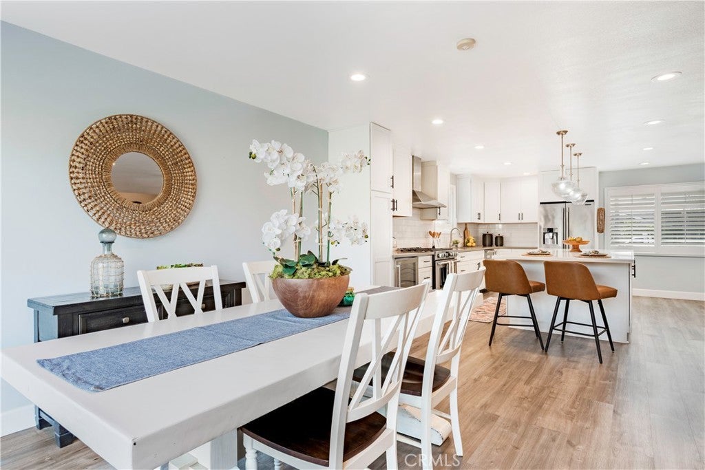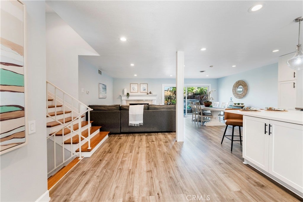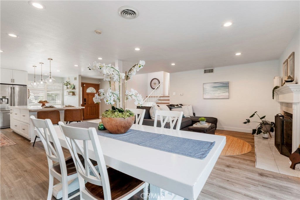 Welcome to one of Long Beach's most sought-after neighborhoods — El Dorado Park Estates. This beautifully remodeled 201 Model tri-level home, the most popular floor plan built by S&S, offers an exceptional blend of space, style, and versatility across 2,242 square feet of thoughtfully designed living space. The main level greets you with a stunning, fully remodeled kitchen that flows seamlessly into the living and dining areas — an entertainer's dream featuring an oversized island, gleaming stainless steel appliances and elegant quartz countertops. A formal living room and dining room complete the main level, along with a newly installed sliding glass door that opens to the backyard, effortlessly connecting indoor and outdoor living. The upper level is home to two generous guest bedrooms, a full hall bath with tub/shower combination, and convenient linen storage. Also upstairs, the serene primary suite offers double mirrored sliding closet doors, rich hardwood floors, and a dedicated vanity area. The private bath has been tastefully updated with floor-to-ceiling tile, a walk-in shower with glass doors, and refined finishes throughout. The lower level provides incredible flexibility — ideal for multi-generational living or extended guest accommodations — featuring a full bathroom, a spacious bedroom, a comfortable family room, and an oversized laundry room. Throughout the home you'll find beautiful hardwood floors upstairs and luxury vinyl plank flooring downstairs, smooth ceilings, recessed lighting, central heating and air conditioning, and full copper plumbing — offering both comfort and long-term peace of mind. Outside, low-maintenance brick paver hardscape adorns both the driveway and back patio, while the lush backyard showcases a mature peach tree, a relaxing spa, and room to add a pool — making it the perfect setting for year-round entertaining. Automatic sprinklers front and back keep everything effortlessly green. Located just minutes from Los Alamitos High School, El Dorado Park, top-rated shopping, dining, and the 405, 605 and 22 freeways, this exceptional home truly has it all, including updates being done during the week of 04/15/26.