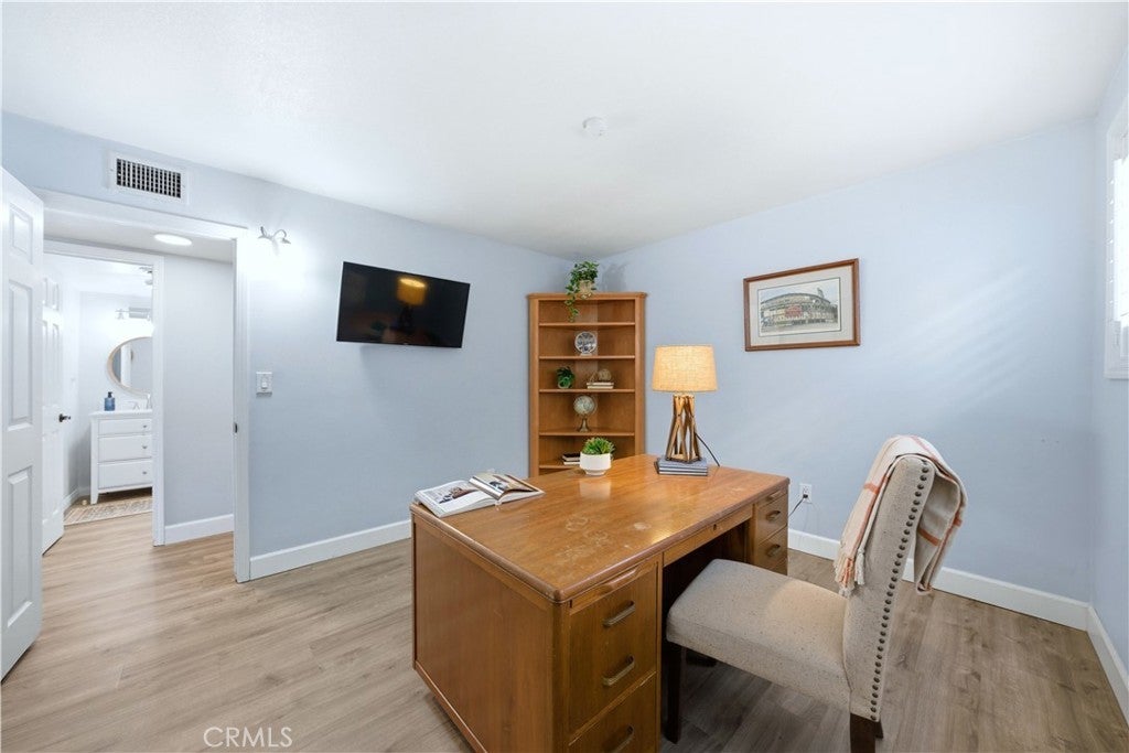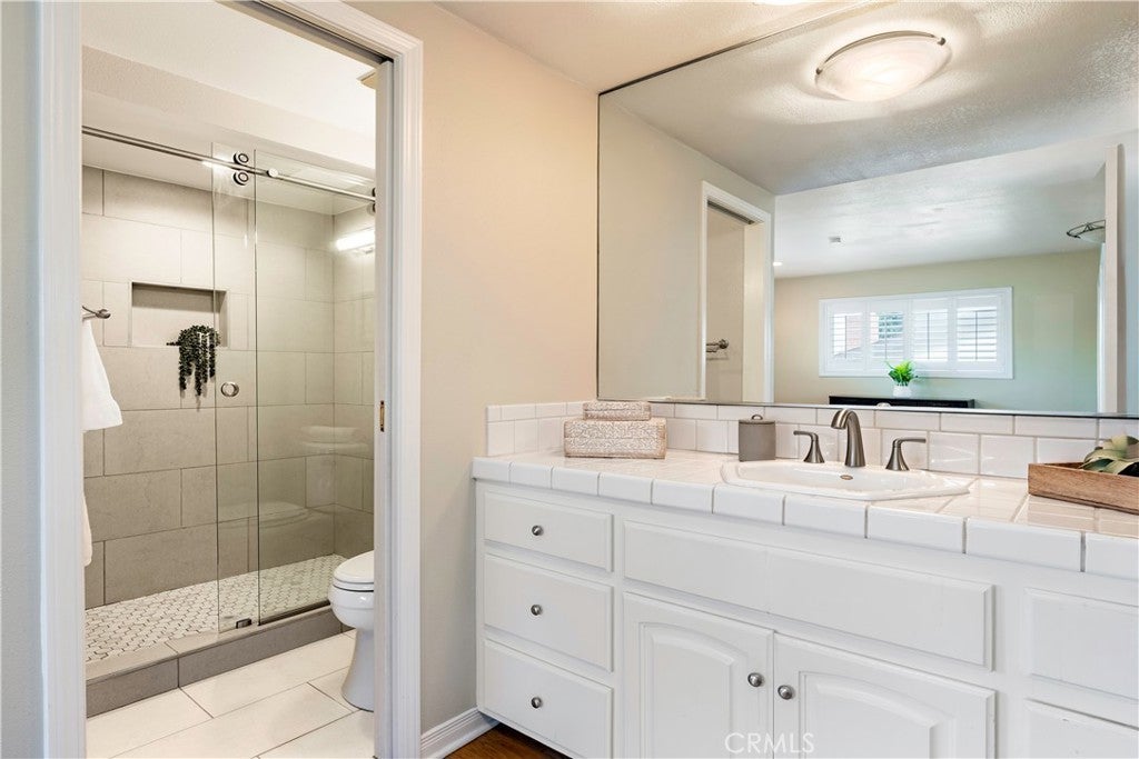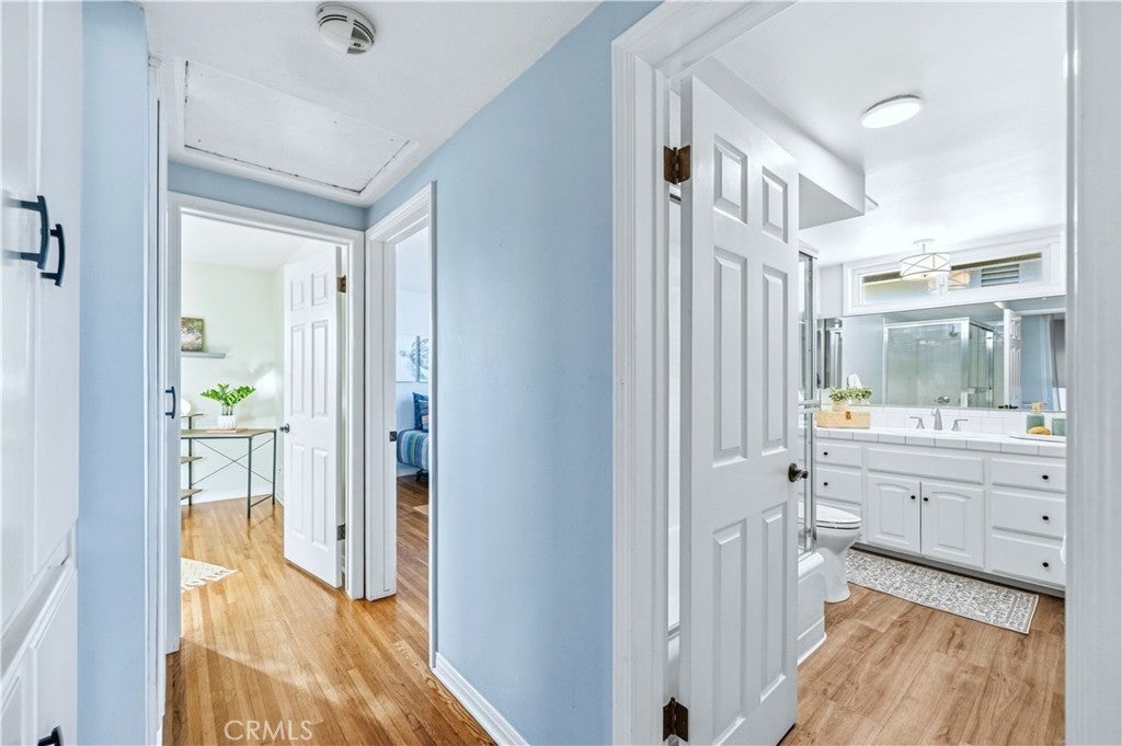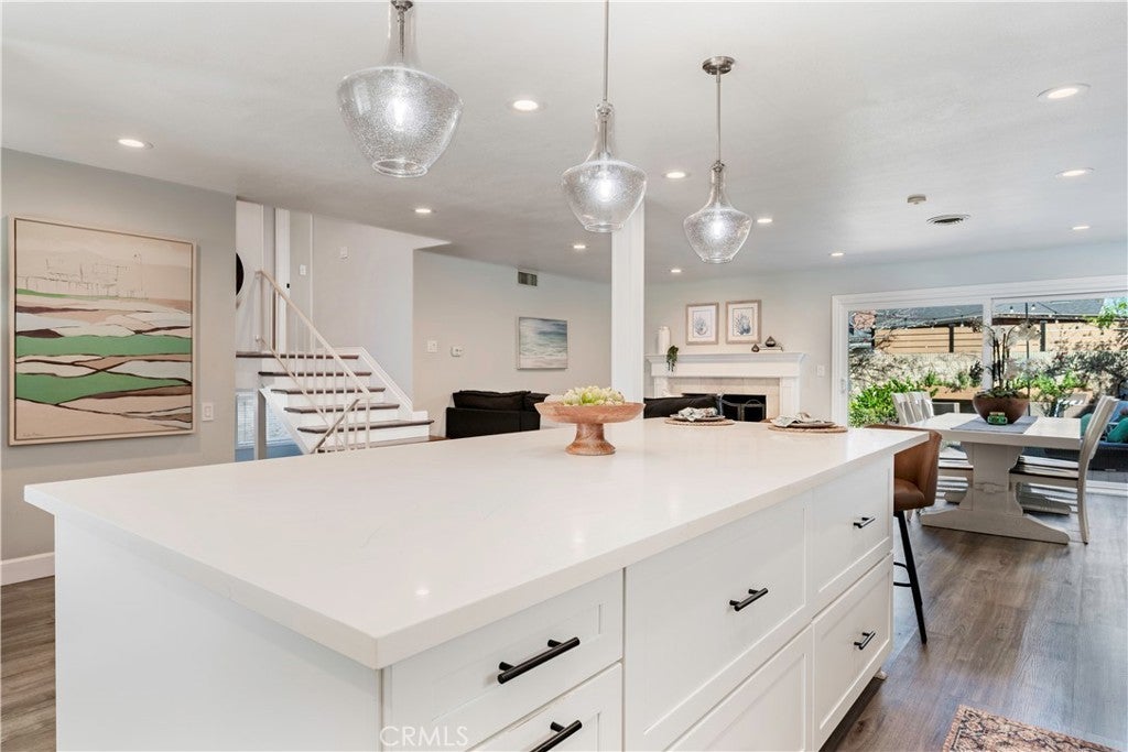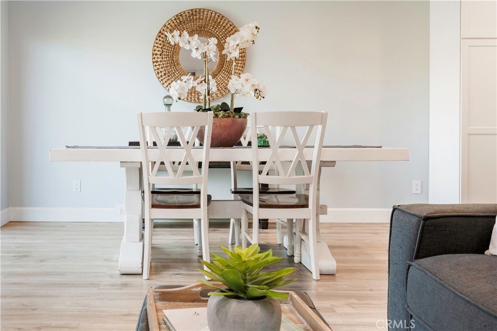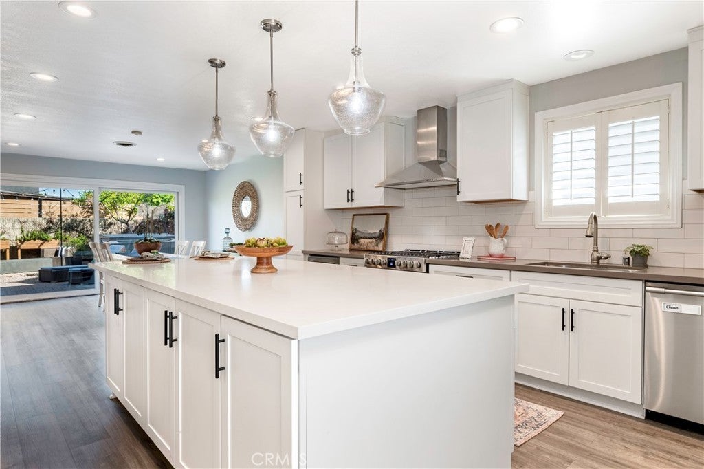 Welcome to one of Long Beach's most sought-after neighborhoods — El Dorado Park Estates. This beautifully remodeled 201 Model tri-level home, the most popular floor plan built by S&S, offers an exceptional blend of space, style, and versatility across 2,242 square feet of thoughtfully designed living space. The main level greets you with a stunning, fully remodeled kitchen that flows seamlessly into the living and dining areas — an entertainer's dream featuring an oversized island, gleaming stainless steel appliances and elegant quartz countertops. A formal living room and dining room complete the main level, along with a newly installed sliding glass door that opens to the backyard, effortlessly connecting indoor and outdoor living. The upper level is home to two generous guest bedrooms, a full hall bath with tub/shower combination, and convenient linen storage. Also upstairs, the serene primary suite offers double mirrored sliding closet doors, rich hardwood floors, and a dedicated vanity area. The private bath has been tastefully updated with floor-to-ceiling tile, a walk-in shower with glass doors, and refined finishes throughout. The lower level provides incredible flexibility — ideal for multi-generational living or extended guest accommodations — featuring a full bathroom, a spacious bedroom, a comfortable family room, and an oversized laundry room. Throughout the home you'll find beautiful hardwood floors upstairs and luxury vinyl plank flooring downstairs, smooth ceilings, recessed lighting, central heating and air conditioning, and full copper plumbing — offering both comfort and long-term peace of mind. Outside, low-maintenance brick paver hardscape adorns both the driveway and back patio, while the lush backyard showcases a mature peach tree, a relaxing spa, and room to add a pool — making it the perfect setting for year-round entertaining. Automatic sprinklers front and back keep everything effortlessly green. Located just minutes from Los Alamitos High School, El Dorado Park, top-rated shopping, dining, and the 405, 605 and 22 freeways, this exceptional home truly has it all, including updates being done during the week of 04/15/26.